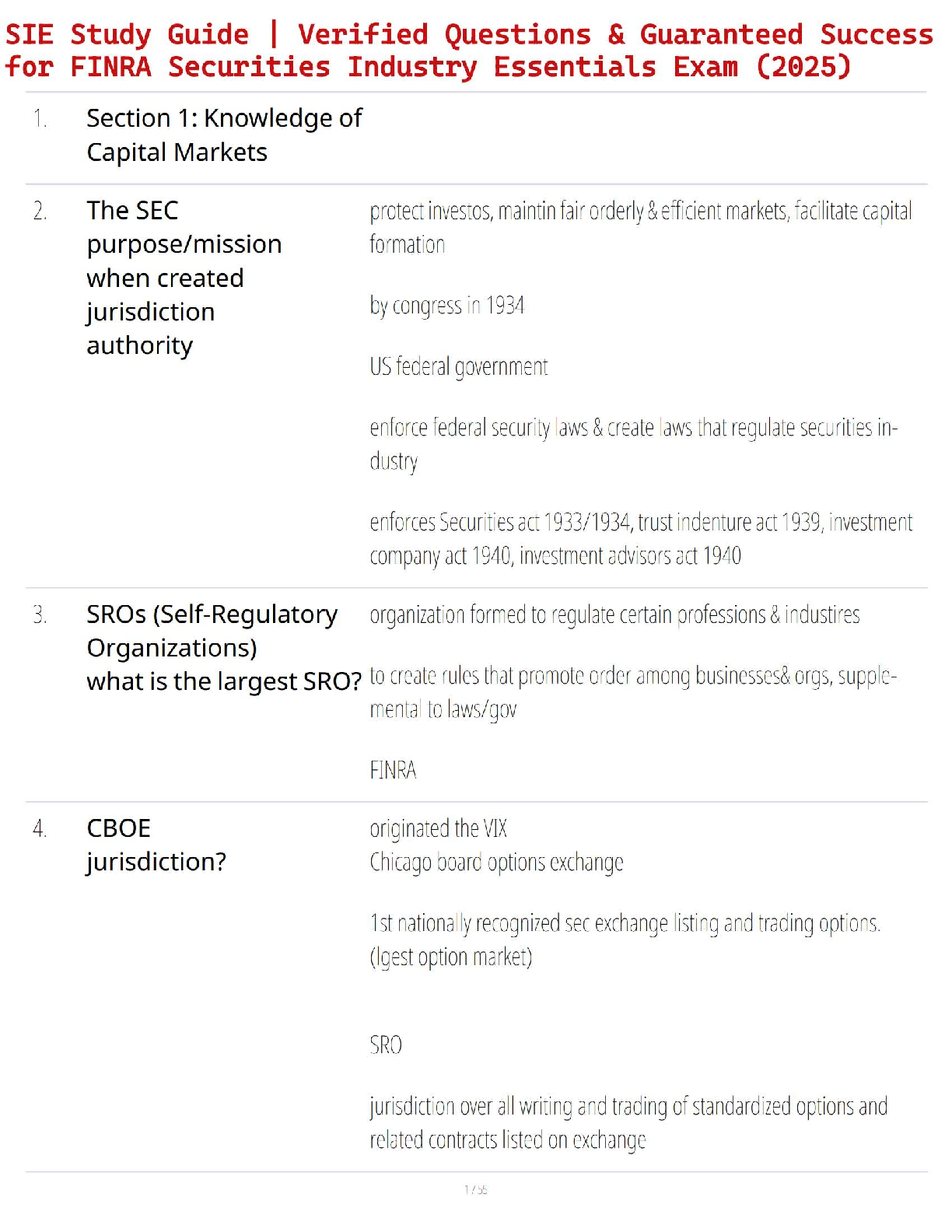 SECURITY > STUDY GUIDE > SIE Study Guide | Verified Questions & Guaranteed Success for FINRA Securities Industry Essentials Exam (2025) (All)