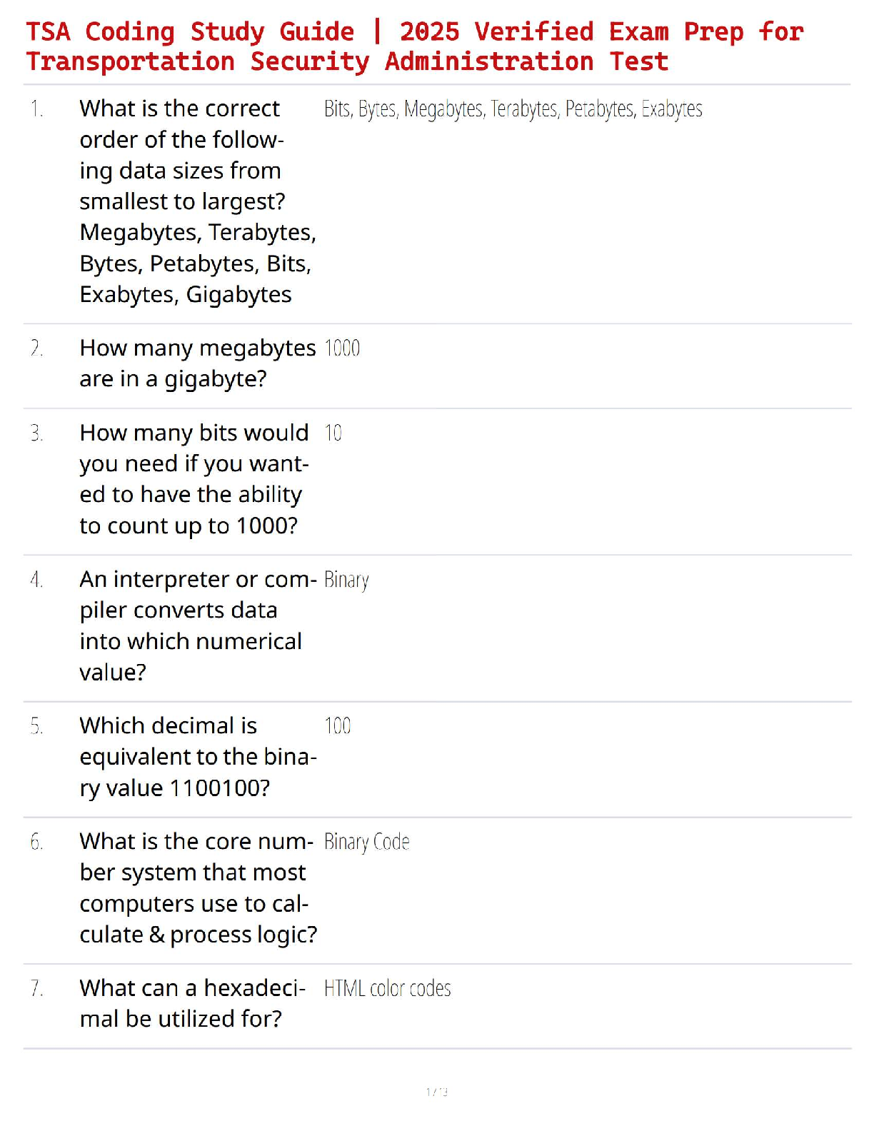 SECURITY > STUDY GUIDE > TSA Coding Study Guide | 2025 Verified Exam Prep for Transportation Security Administration Test (All)