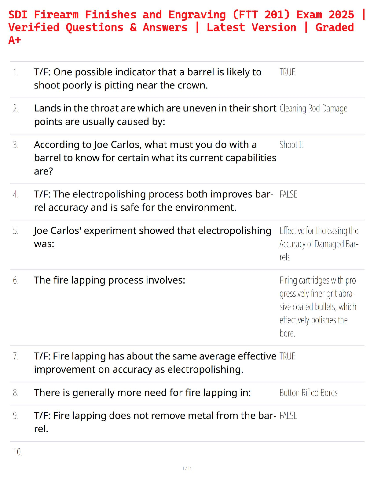 SECURITY > STUDY GUIDE > SDI Firearm Finishes and Engraving (FTT 201) Exam 2025 | Verified Questions & Answers | Latest Version | Graded A+ (All)