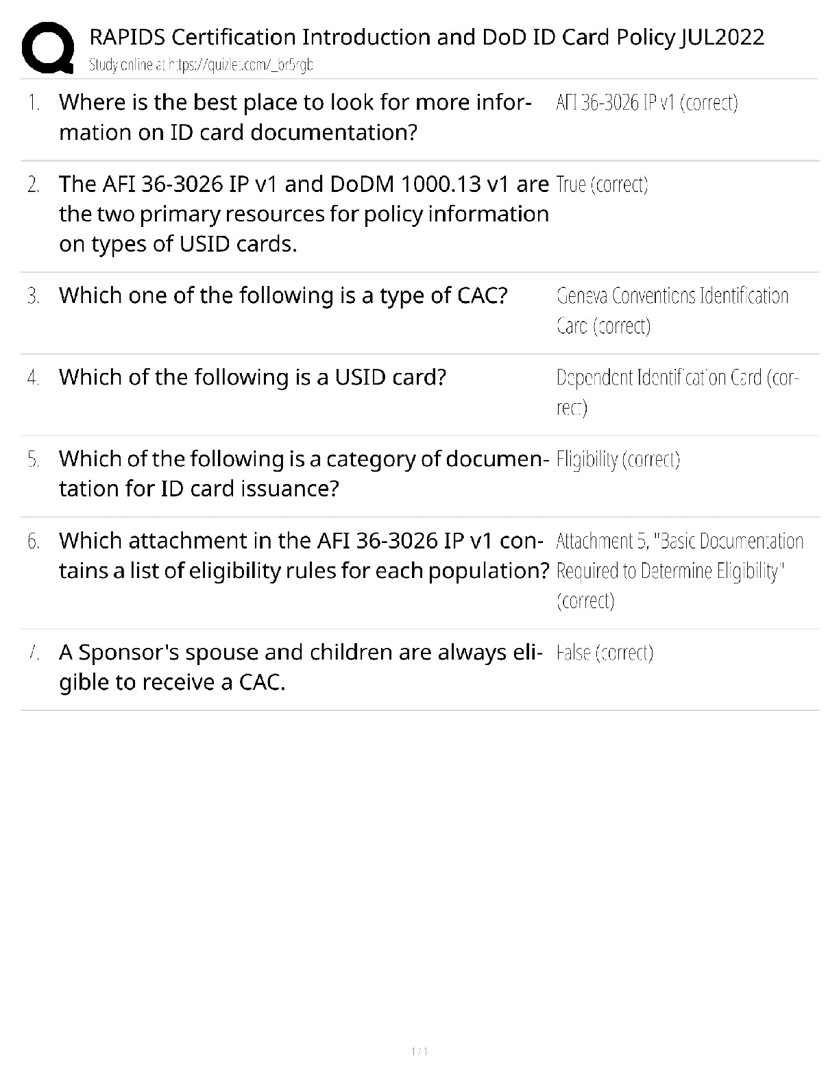 SECURITY > QUESTIONS & ANSWERS > RAPIDS Certification / DoD ID Card Policy JUL2022 / 2025 Update / Score 100% (All)