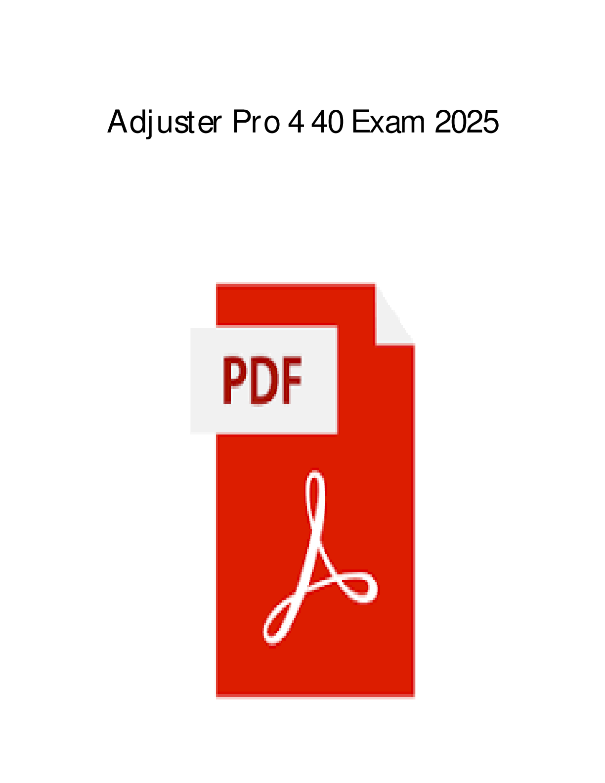 Claims Adjuster > EXAMs > ADJUSTER PRO 4 40 LATEST EXAM QUESTIONS WITH COMPLETE VERIFOED ANSWERS GRADED A++ (All)
