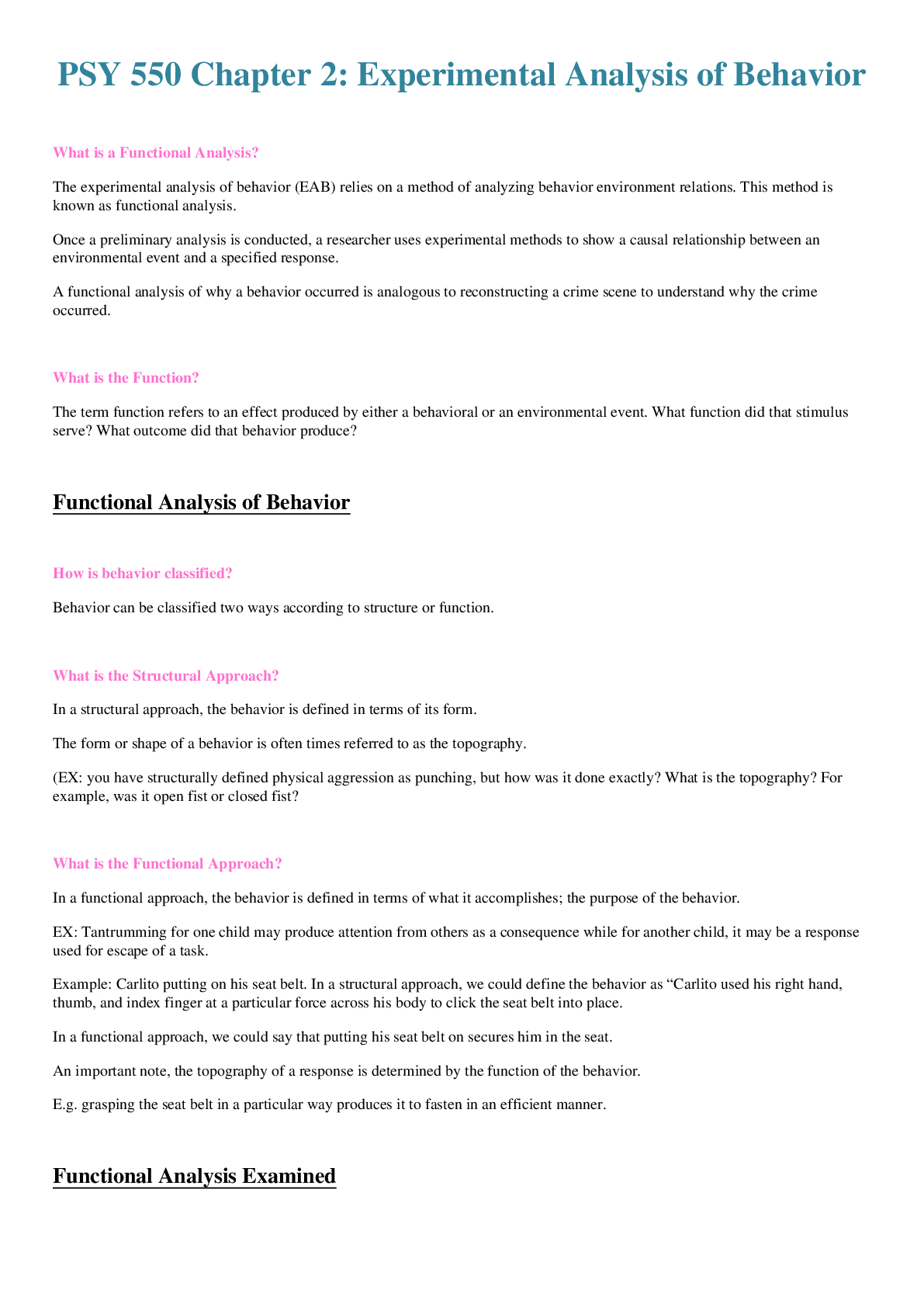 Philosophy > STUDY GUIDE > PSY 550 Chapter 2: Experimental Analysis of Behavior,100% CORRECT (All)
