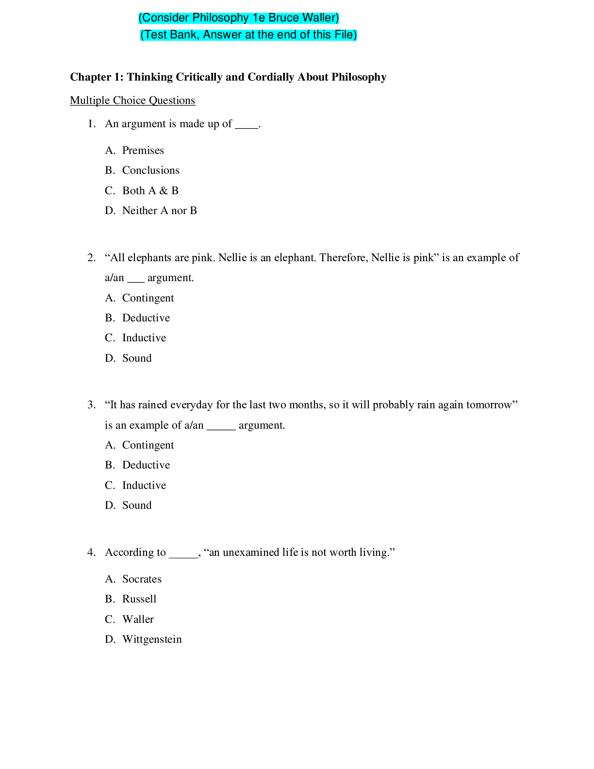 Philosophy > TEST BANKS > Consider Philosophy 1e Bruce Waller (Test Bank) (All)