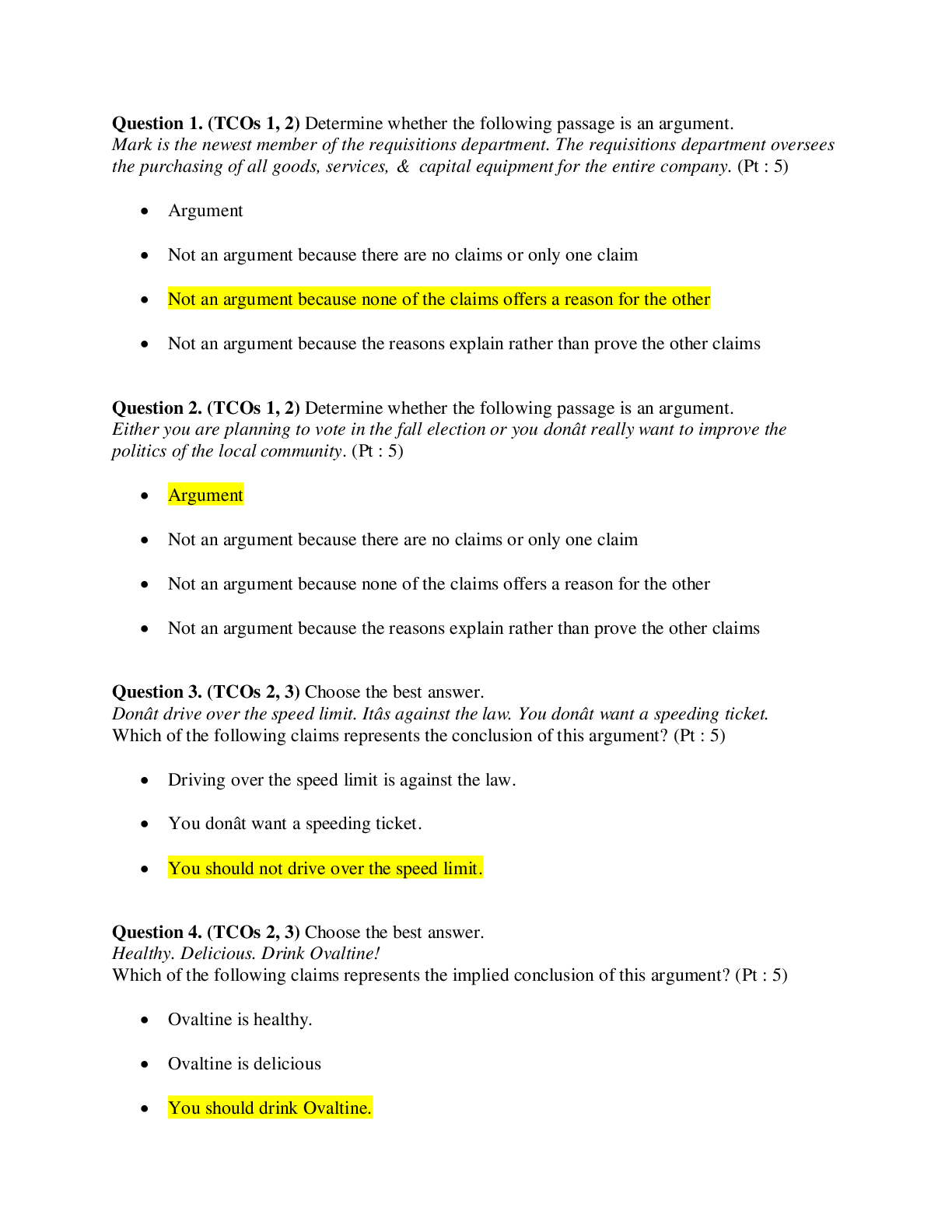 Philosophy > QUESTIONS & ANSWERS > PHIL 347 Critical Reasoning, Final Exam, All Correct Test bank Questions and Answers with Explanations (latest Update), 100% Correct, Download to Score A (All)