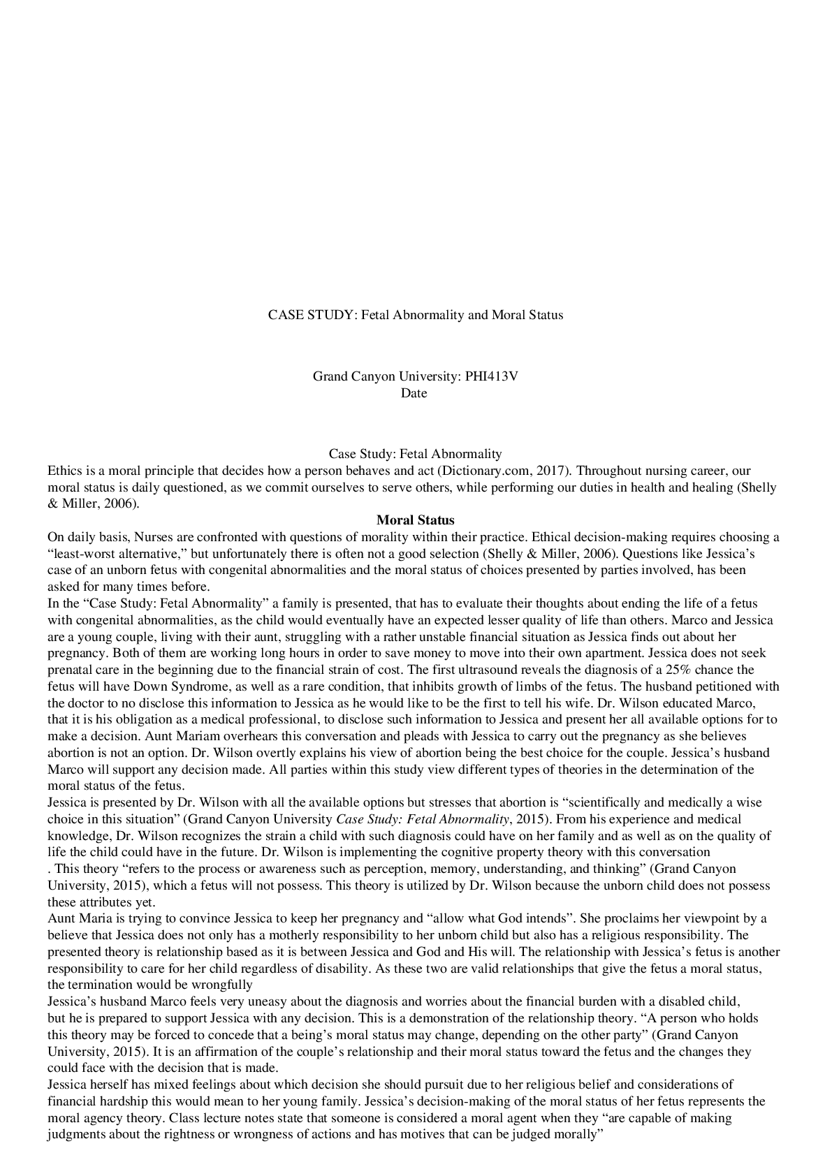 Philosophy > CASE STUDY > PHI 413V CASE STUDY: Fetal Abnormality and Moral Status (All)