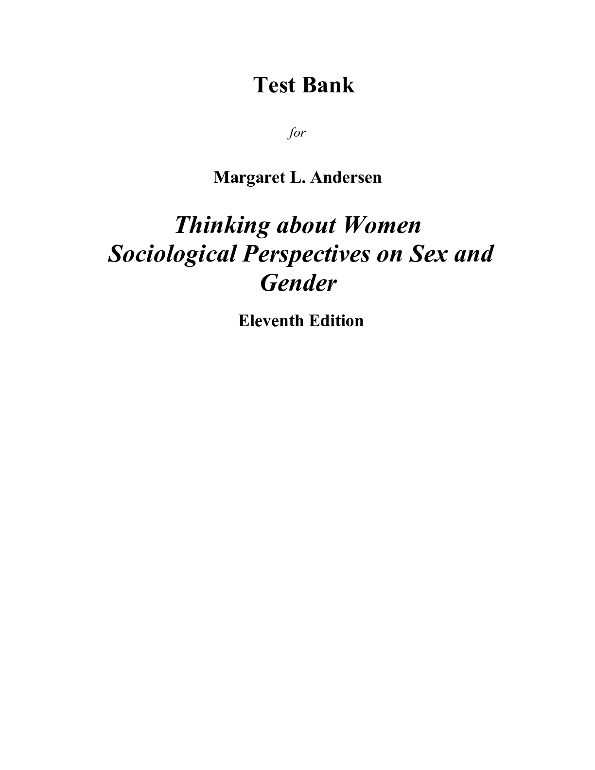 Philosophy > TEST BANKS > Thinking About Women, 11th Edition by Margaret Andersen | TEST BANK (All)