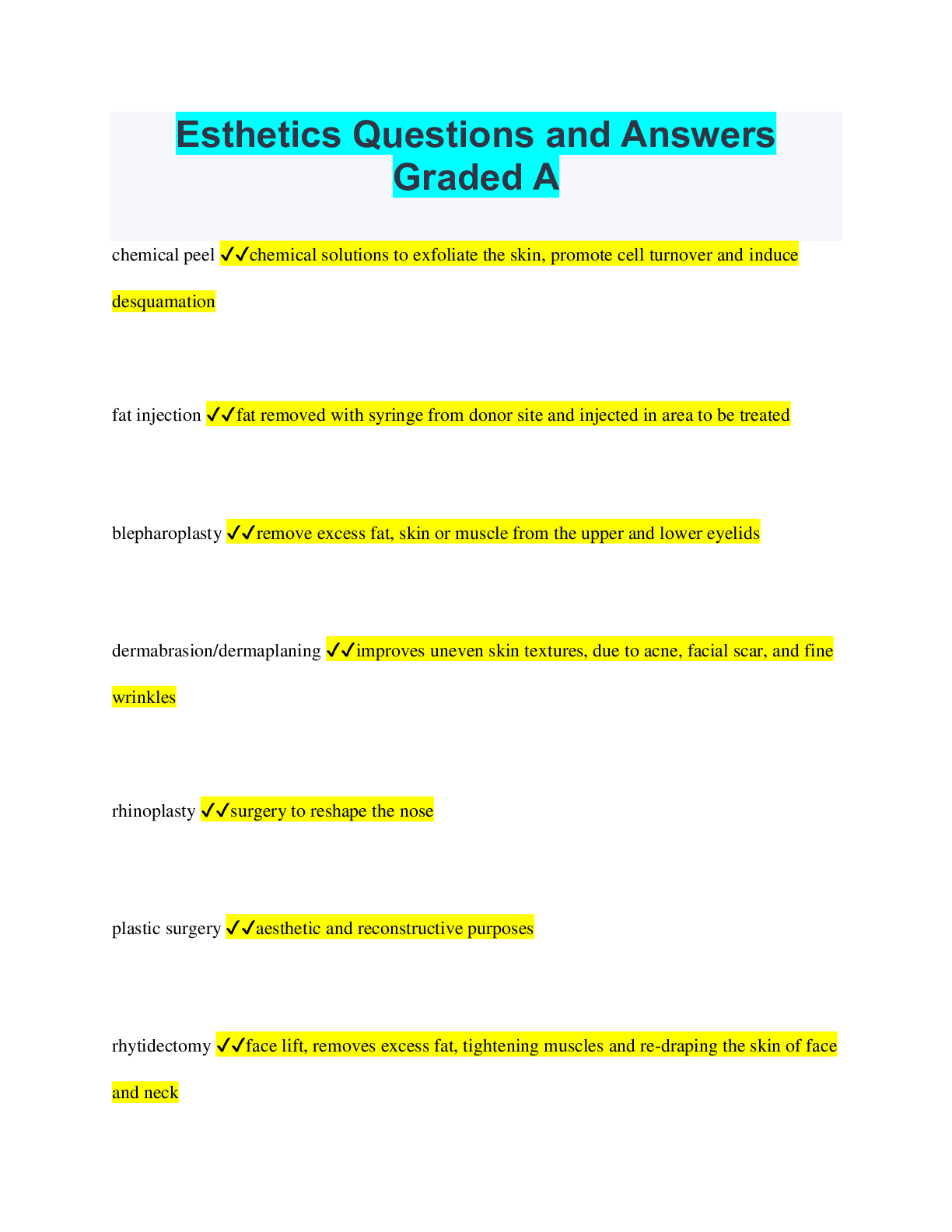 Philosophy > QUESTIONS & ANSWERS > Esthetician Terms Questions and Answers Already Passed (All)
