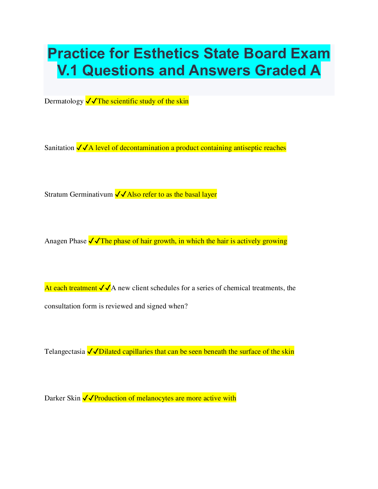 Philosophy > QUESTIONS & ANSWERS > Practice for Esthetics State Board Exam V.1 Questions and Answers Graded A (All)