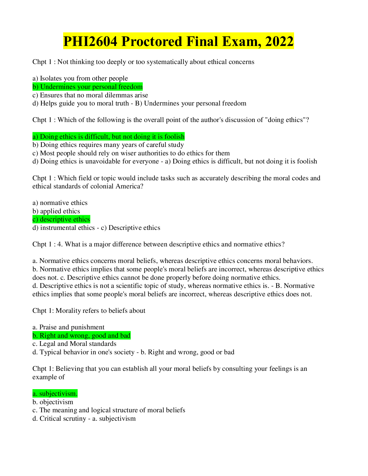 Philosophy > EXAM > PHI 103 QUIZ 1 WEEK 1, QUESTIONS WITH ANSWERS. LATEST (All)