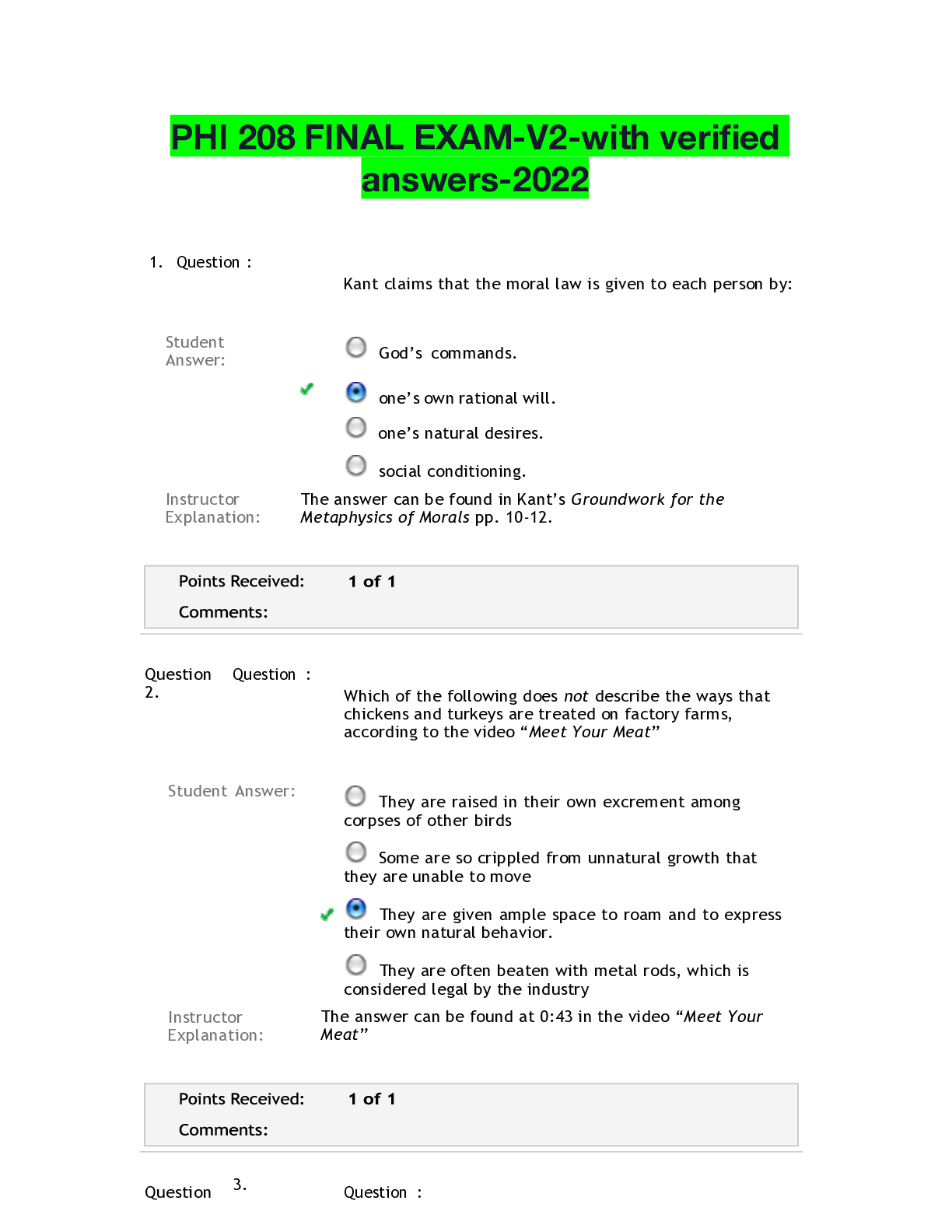 Philosophy > EXAM > PHI 208 FINAL EXAM-V2-with verified answers-2022 (All)