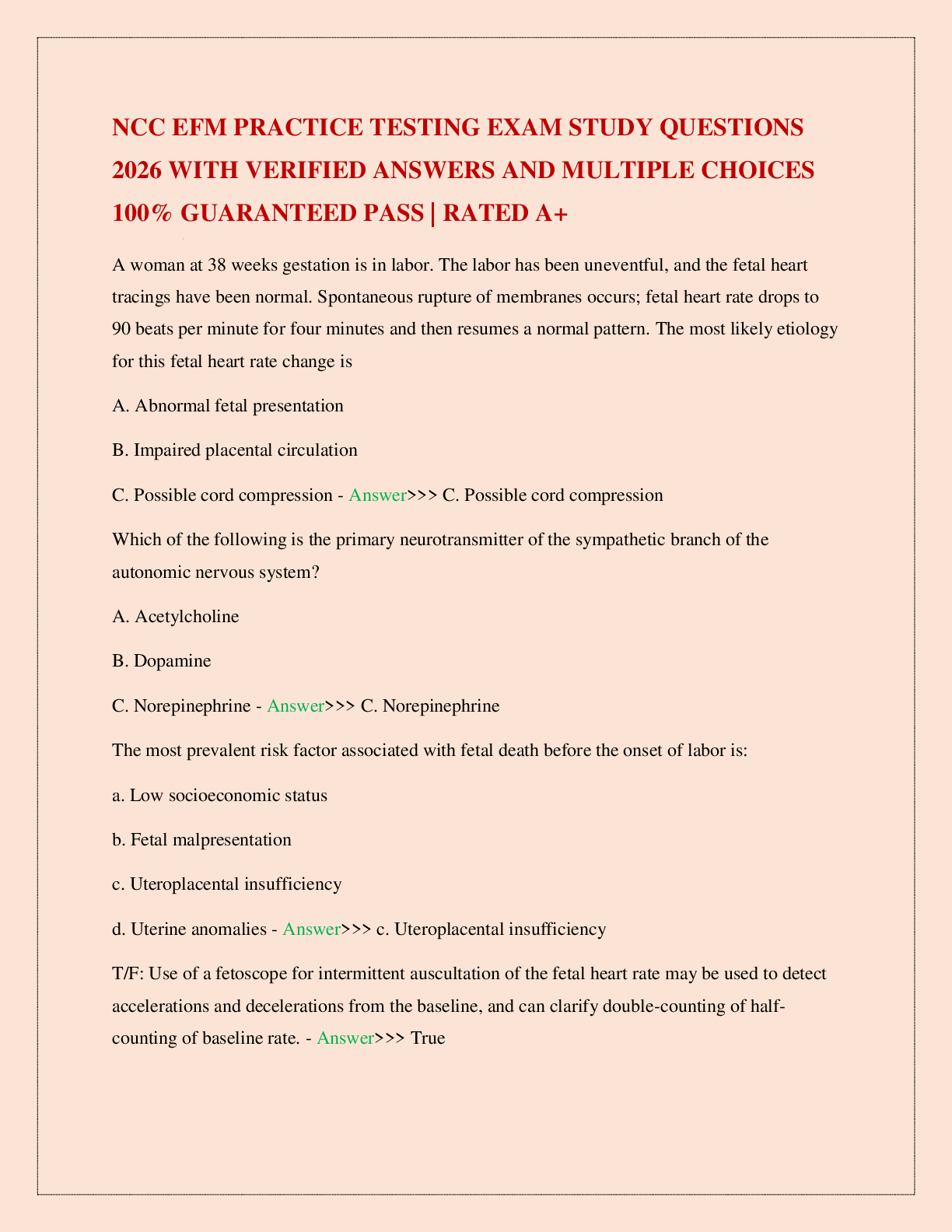 NCC EFM > EXAMs > NCC EFM PRACTICE TESTING EXAM STUDY QUESTIONS 2026 WITH VERIFIED ANSWERS AND MULTIPLE CHOICES 100% GUARANTEED PASS | RATED A+ (All)