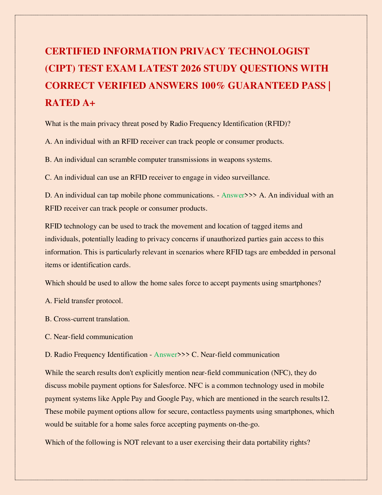 Information Security > EXAM > CERTIFIED INFORMATION PRIVACY TECHNOLOGIST (CIPT) TEST EXAM LATEST 2026 STUDY QUESTIONS WITH CORRECT VERIFIED ANSWERS 100% GUARANTEED PASS | RATED A+ (All)