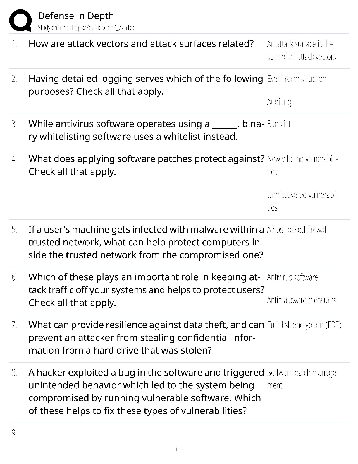 Information Security > QUESTIONS & ANSWERS > Defense in Depth Test Bank / Cybersecurity Certification / 2025 Update / Score 100% (All)