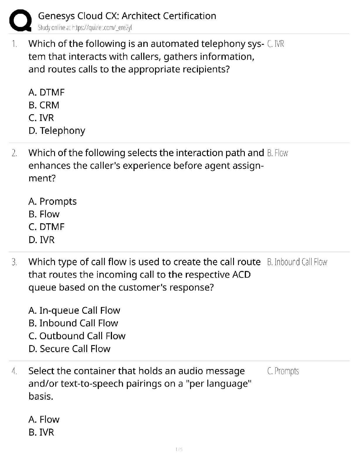 Information Security > QUESTIONS & ANSWERS > Genesys Cloud CX Architect Certification / Cloud Contact Center Exam / 2026 Update / Practice Test & Study Guide (All)