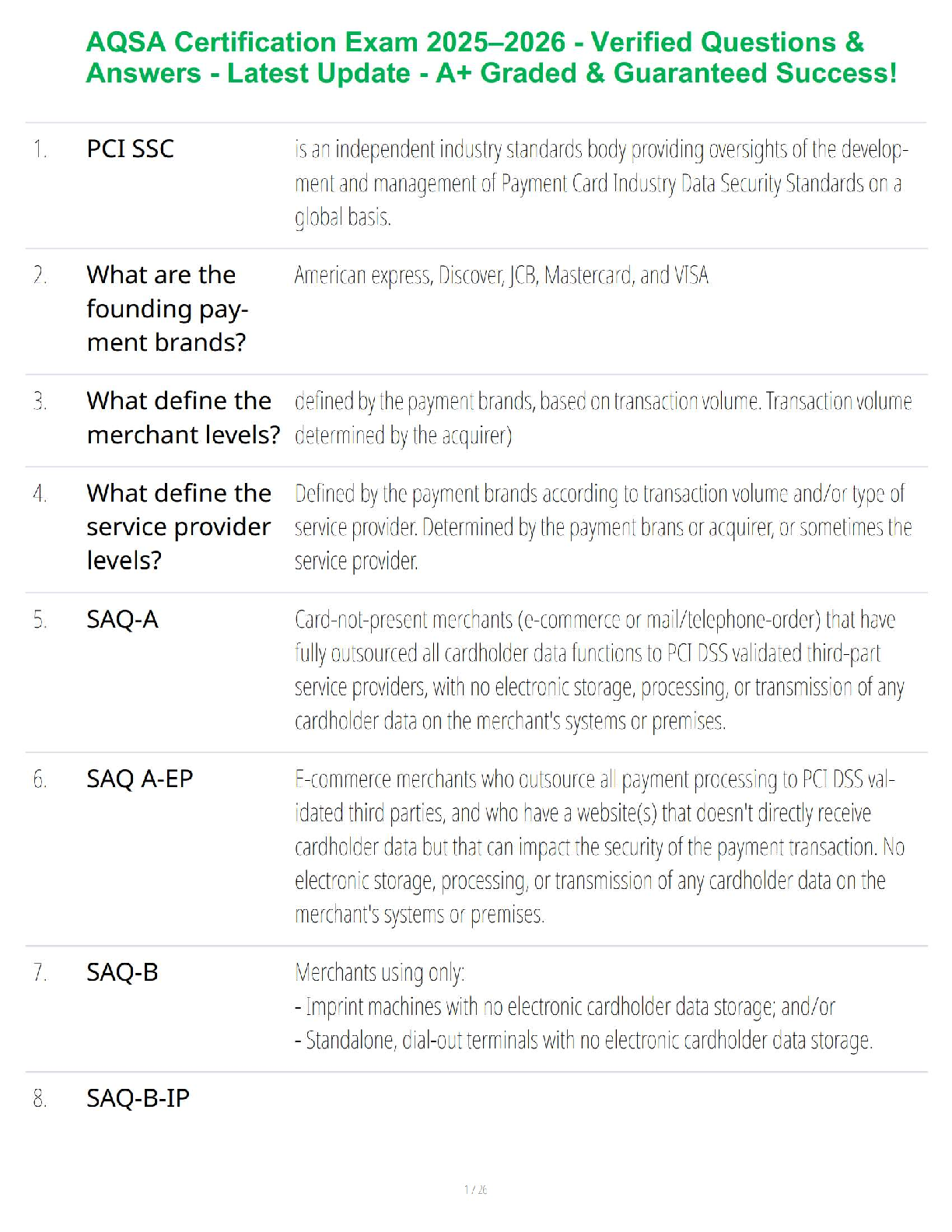 Information Security > QUESTIONS & ANSWERS > AQSA Certification Exam 2025–2026 - Verified Questions & Answers - Latest Update - A+ Graded & Guaranteed Success! (All)