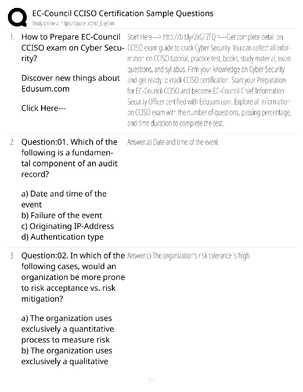 Information Security > QUESTIONS & ANSWERS > EC-Council CCISO Certification Sample Questions Test Bank / Chief Information Security Officer / 2025 Update / Score 100% (All)