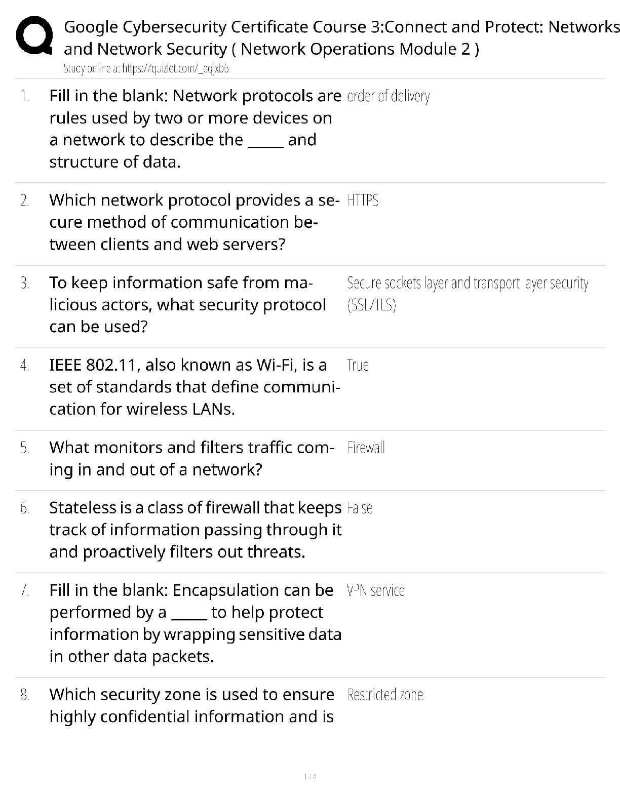 Information Security > QUESTIONS & ANSWERS > Google Cybersecurity Course 3 Test Bank / Network Security Operations / 2025 Update / Score 100% (All)