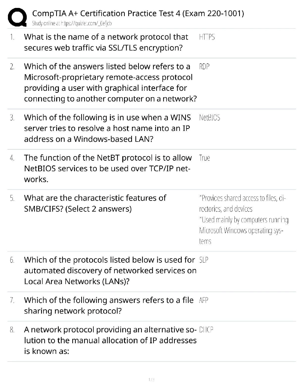 Information Security > QUESTIONS & ANSWERS > CompTIA A+ Practice Test 4 / Exam 220-1001 / 2025 Update / Score 100% / Core 1 Certification Prep (All)