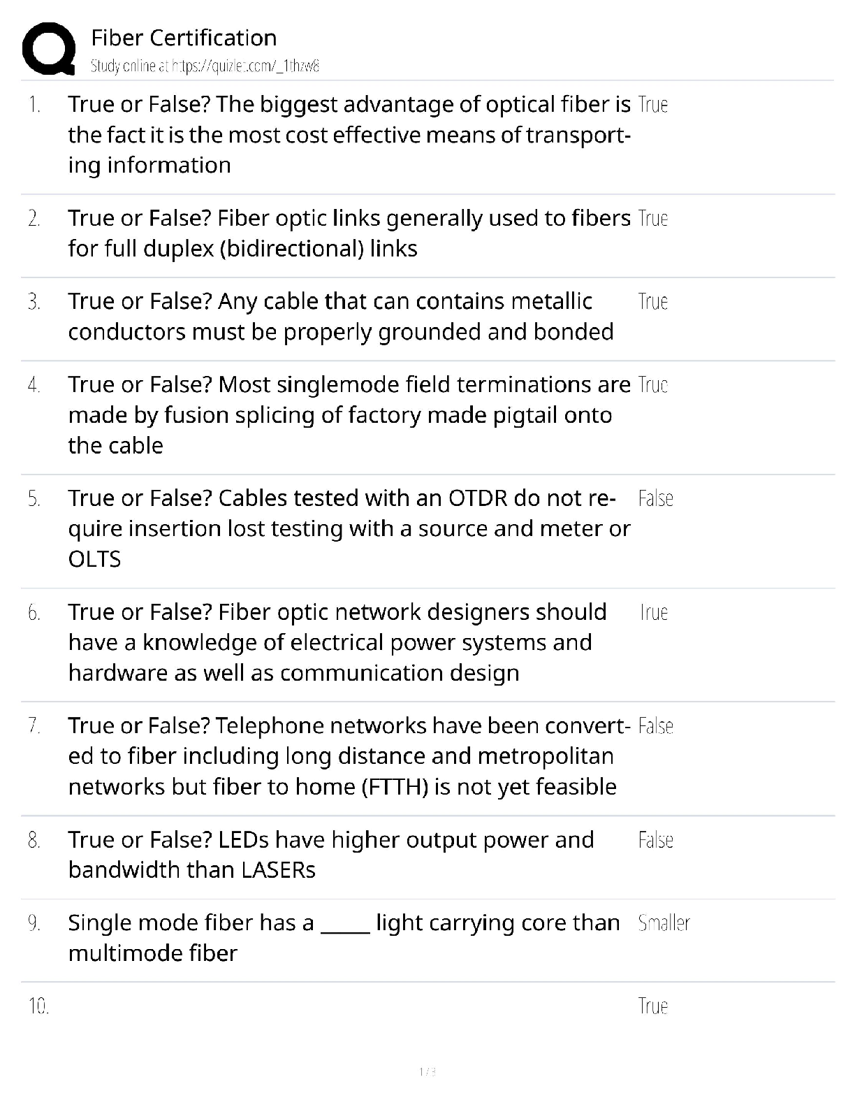 Information Security > QUESTIONS & ANSWERS > Fiber Certification / 2025 Exam Prep / FOI, CFOT, CFOS / Score 100% / Test Bank & Study Guide (All)