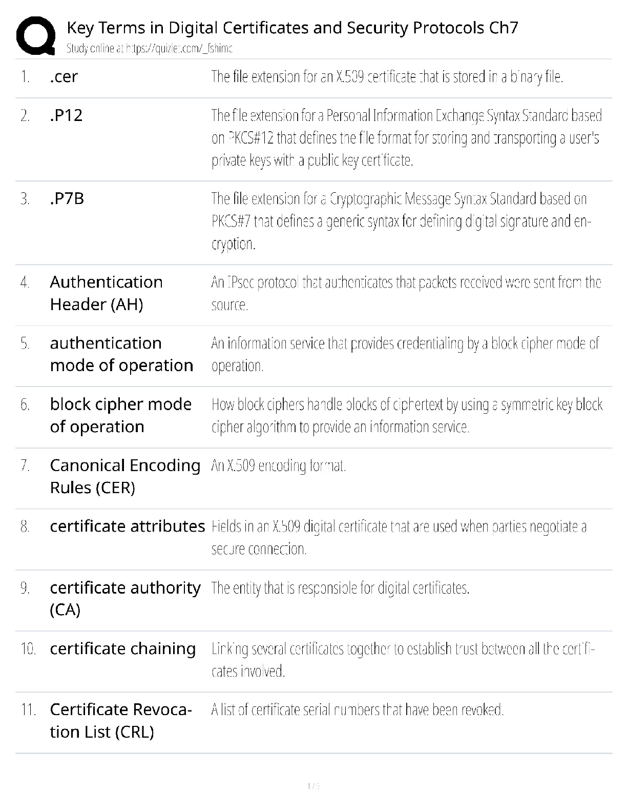 Information Security > QUESTIONS & ANSWERS > Key Terms Digital Certificates & Security Protocols Ch7 / Study Guide / 2025 Update / Score 100% (All)