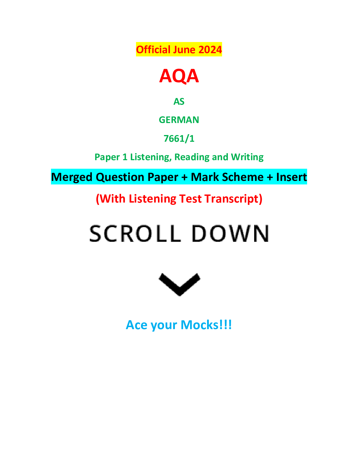 AQA > AQA > Official June 2024 AQA AS GERMAN 7661/1 Paper 1 Listening, Reading and Writing Merged Question Paper + Mark Scheme + Insert (All)