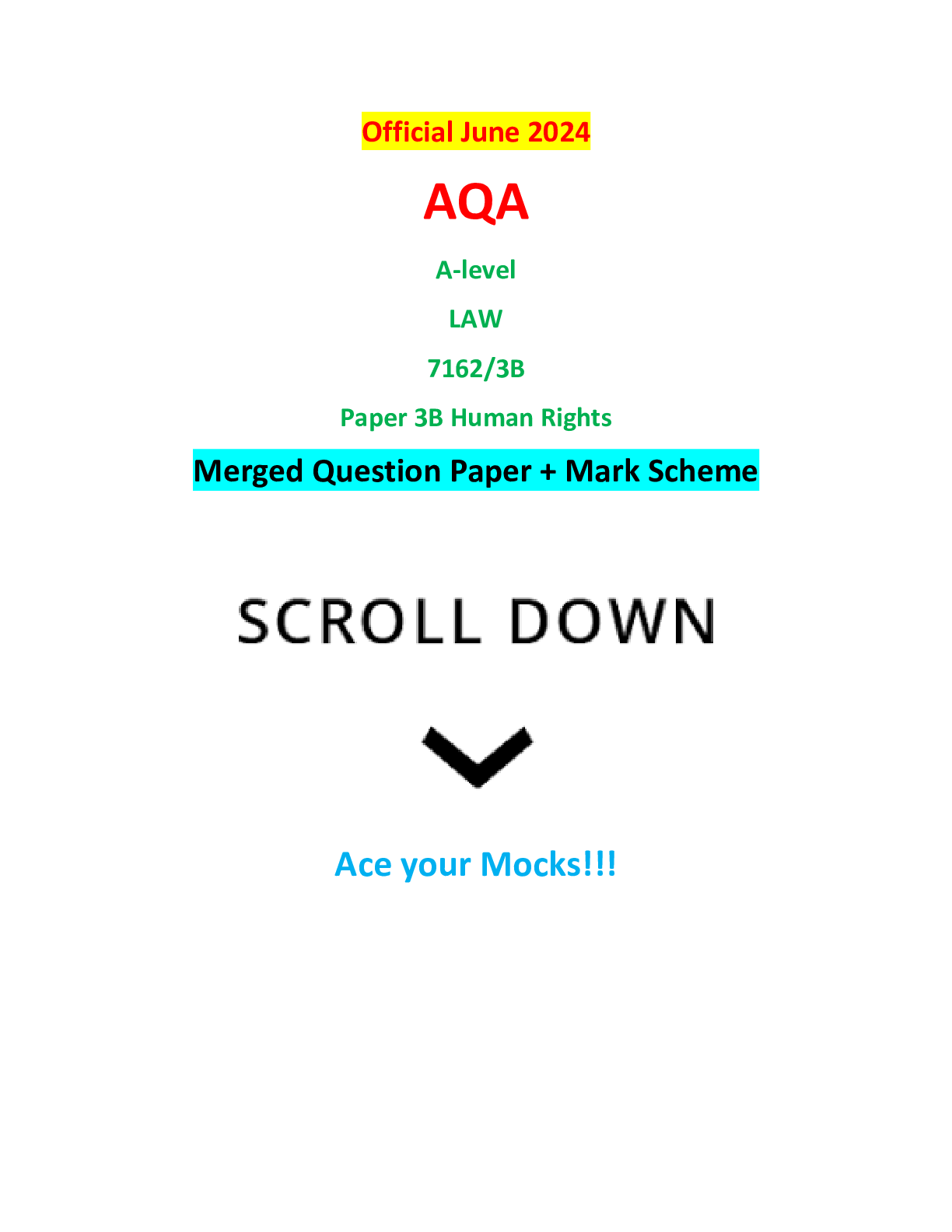 AQA > AQA > Official June 2024 AQA A-level LAW 7162/3B Paper 3B Human Rights Merged Question Paper + Mark Scheme (All)