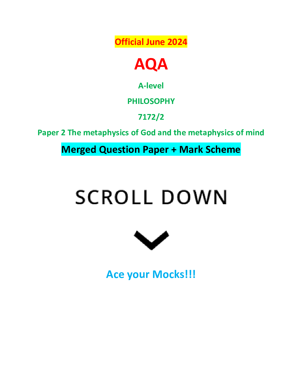 AQA > AQA > Official June 2024 AQA A-level PHILOSOPHY 7172/2 Paper 2 The metaphysics of God and the metaphysics of mind Merged Question Paper + Mark Scheme (All)