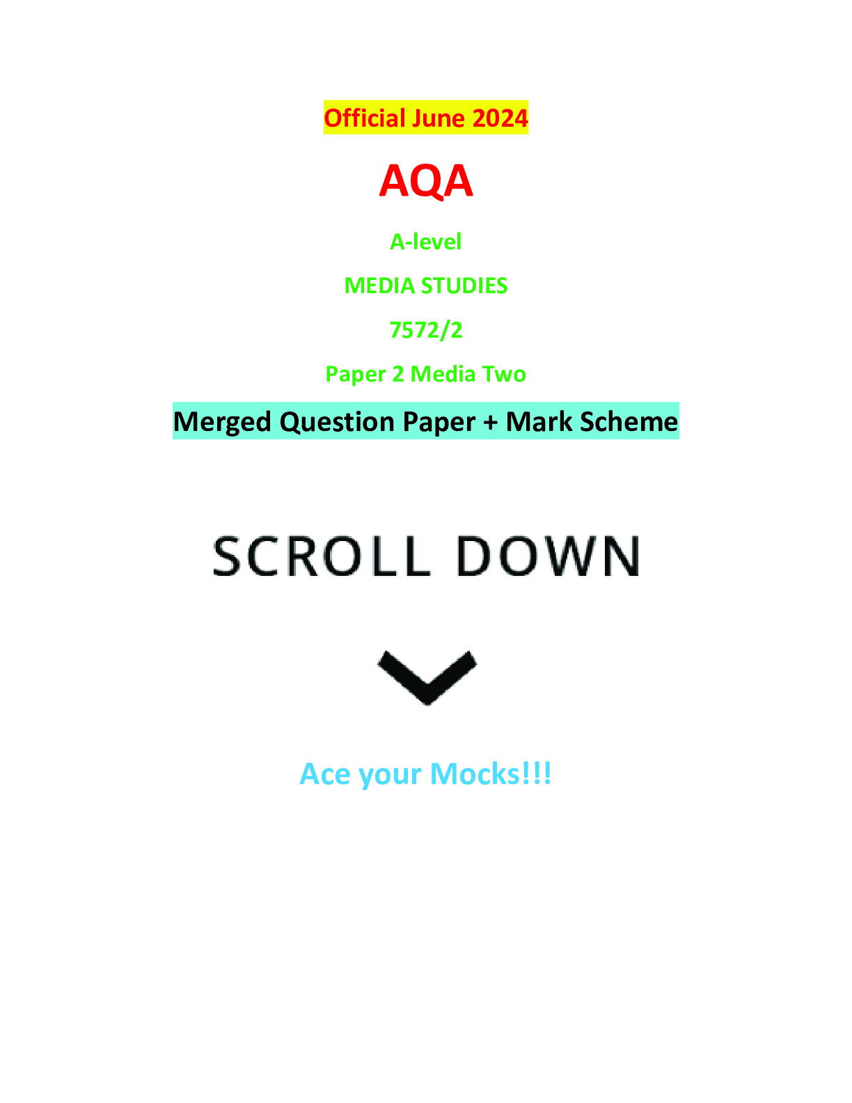 AQA > AQA > Official June 2024 AQA A-level MEDIA STUDIES 7572/2 Paper 2 Media Two Merged Question Paper + Mark Scheme (All)