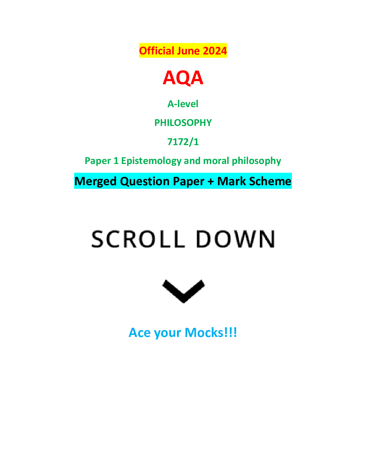 AQA > AQA > Official June 2024 AQA A-level PHILOSOPHY 7172/1 Paper 1 Epistemology and moral philosophy Merged Question Paper + Mark Schem (All)
