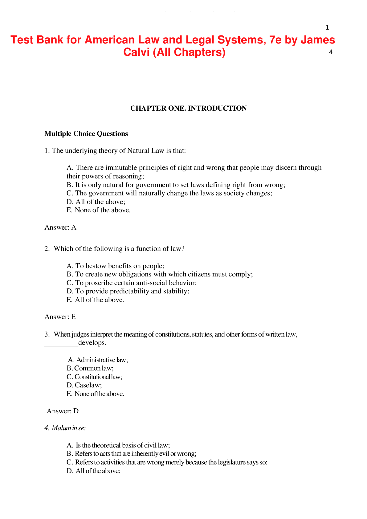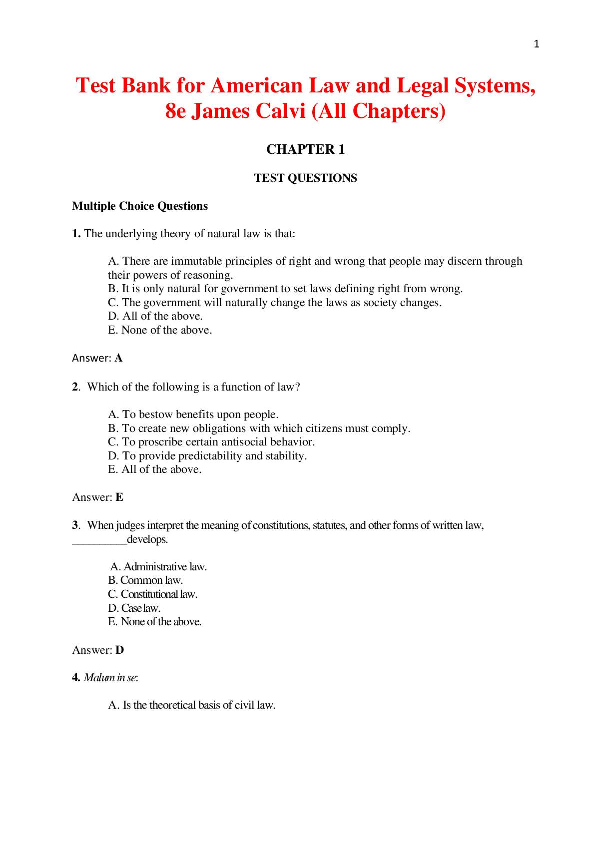 Political Science > TEST BANKS > Test Bank for American Law and Legal Systems, 8e James Calvi (All)