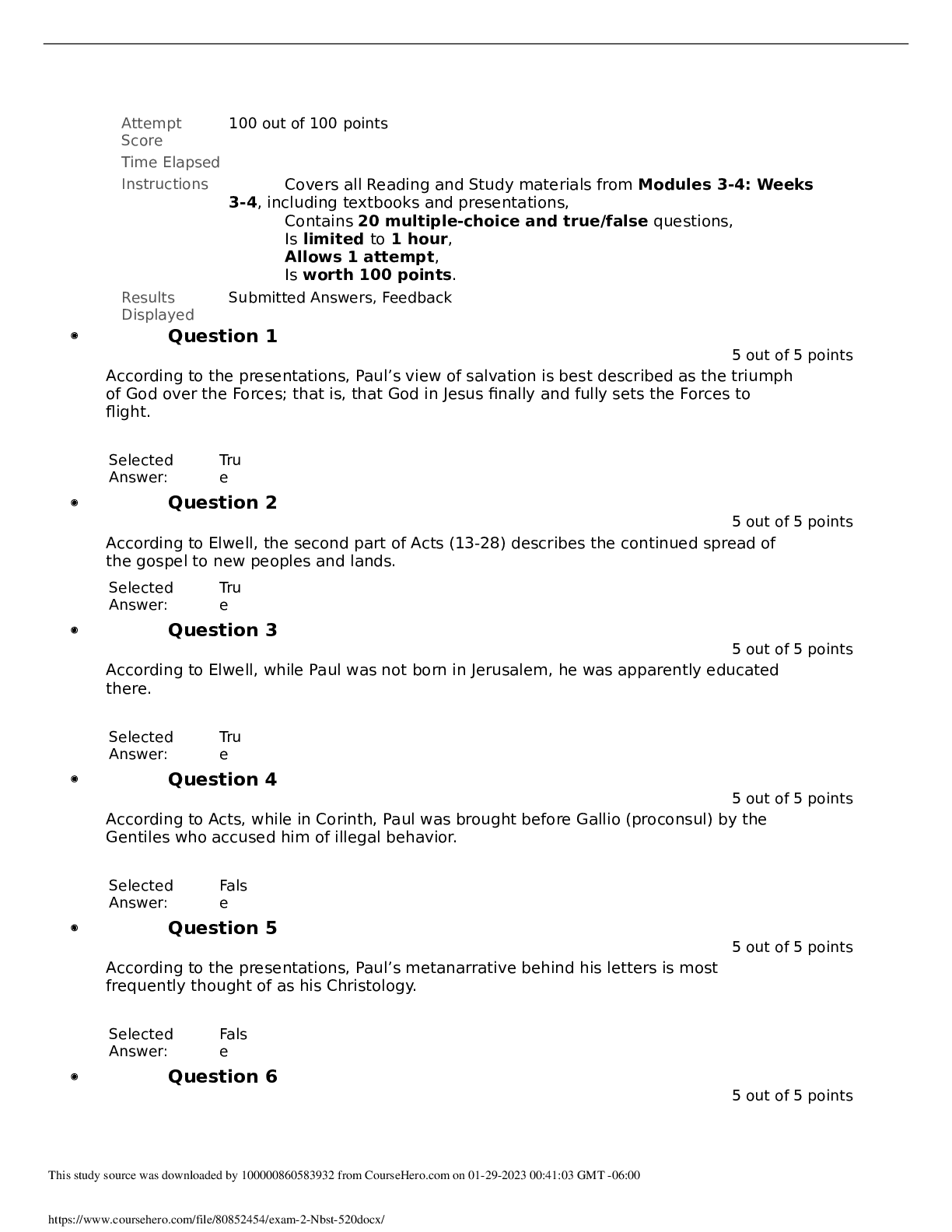 Religious Studies > EXAMs > BIBL 425 TEST 1, WITH QUESTIONS AND ANSWERS (All)
