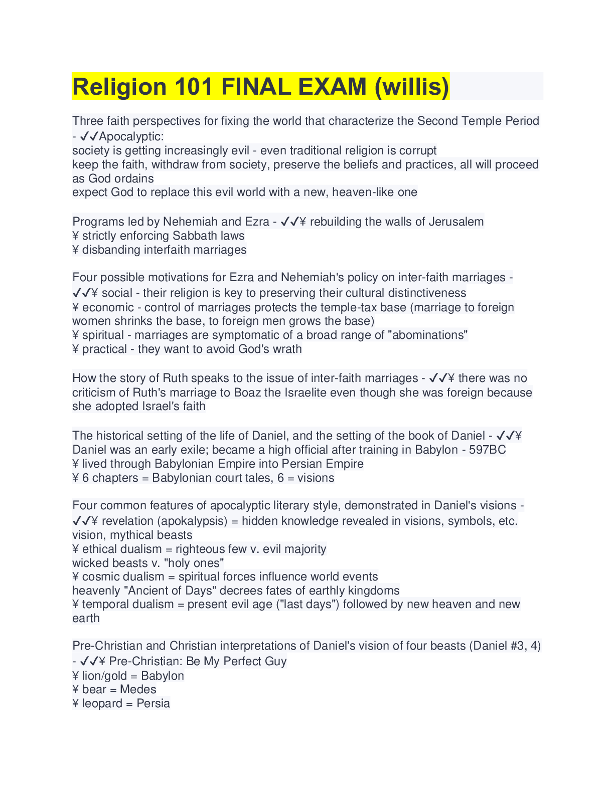 Religious Studies > EXAMs > Religion 101 FINAL EXAM (willis) | with 100% Correct Answers (All)
