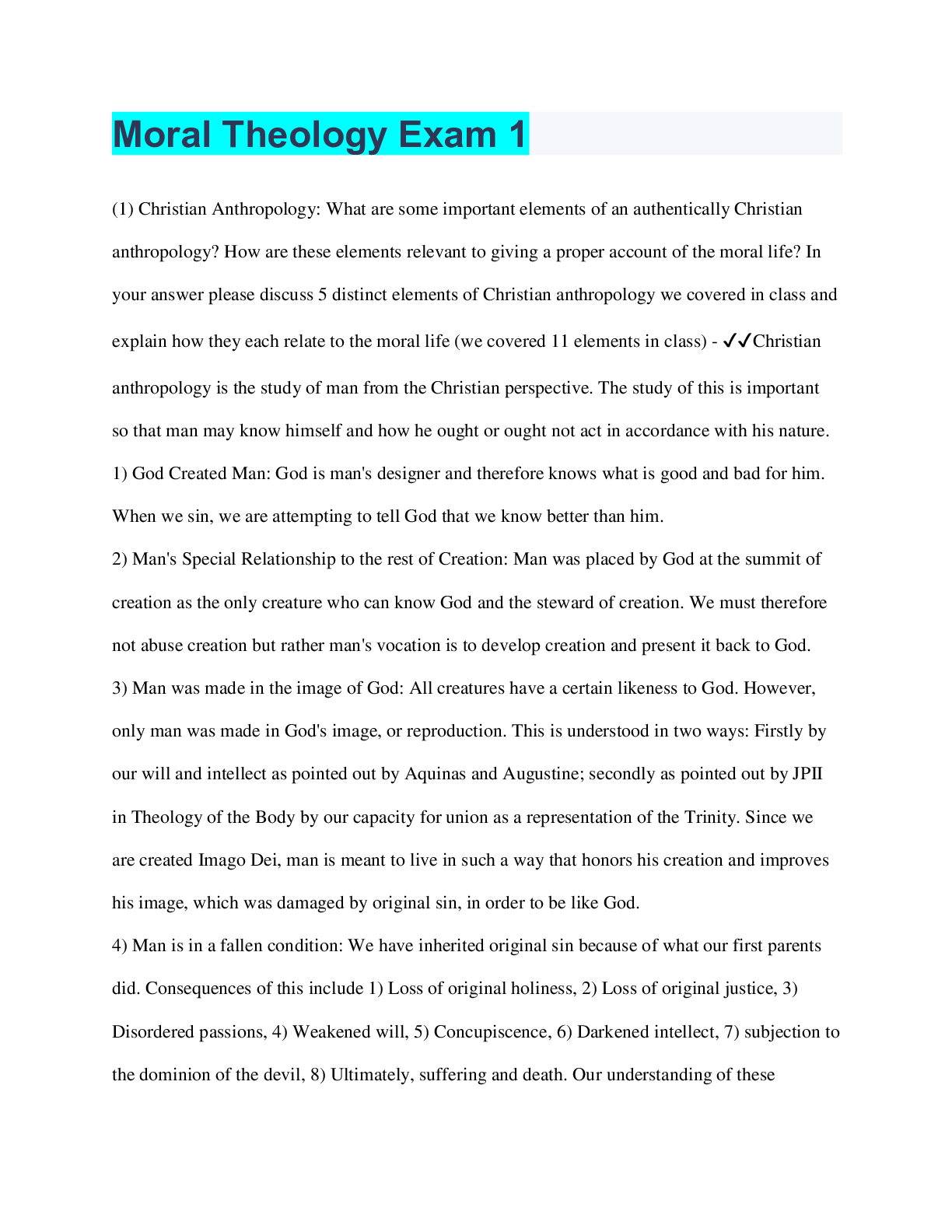 Religious Studies > QUESTIONS & ANSWERS > Moral Theology Exam 1 (All)