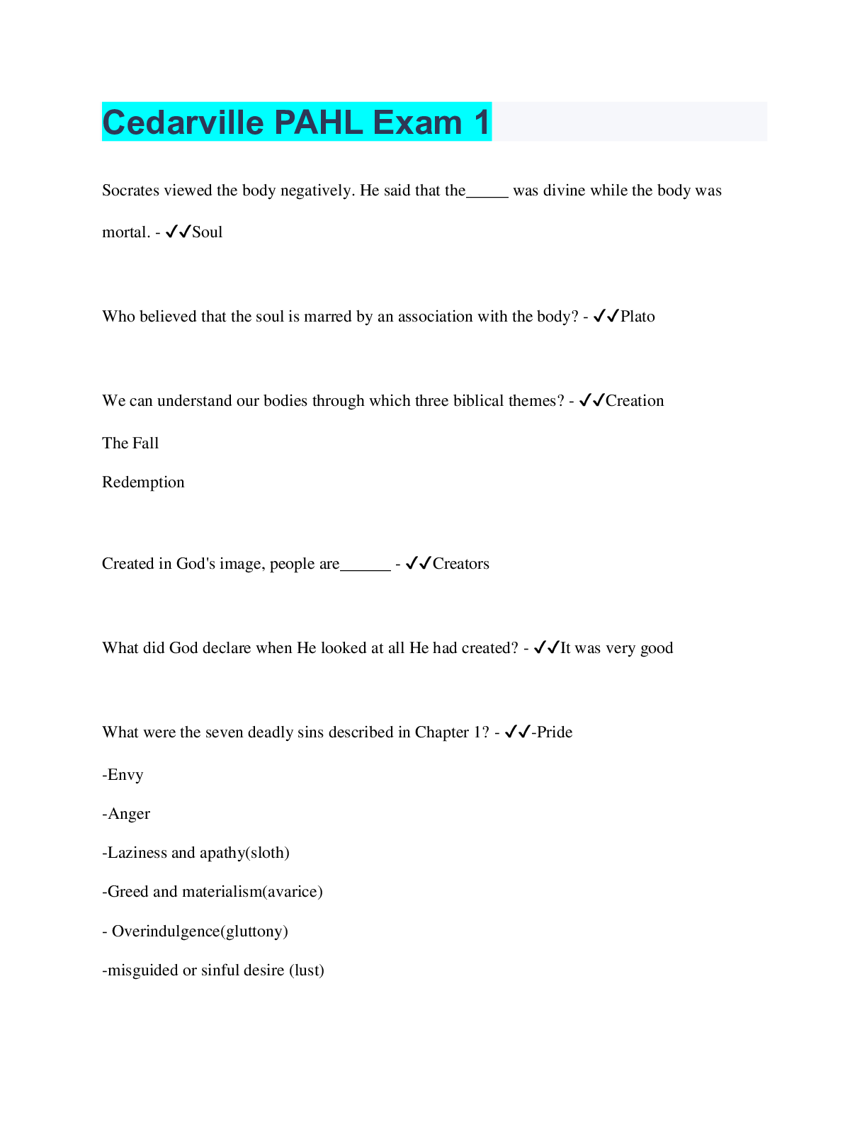 Religious Studies > QUESTIONS & ANSWERS > Cedarville PAHL Exam 1 (All)
