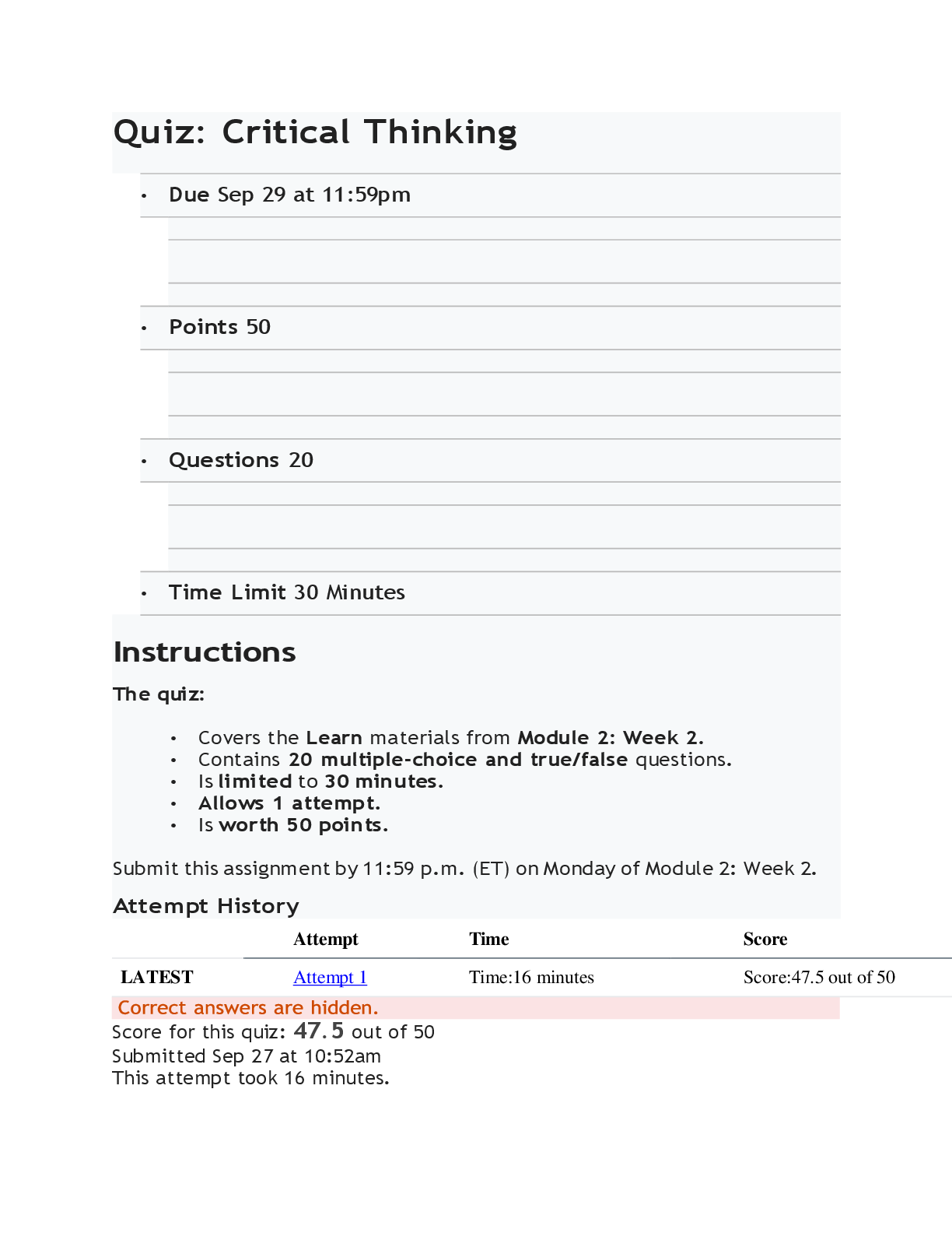 Religious Studies > EXAMs > RLGN 104 Quiz: Critical Thinking | Score 47.5/50 | Liberty University (All)