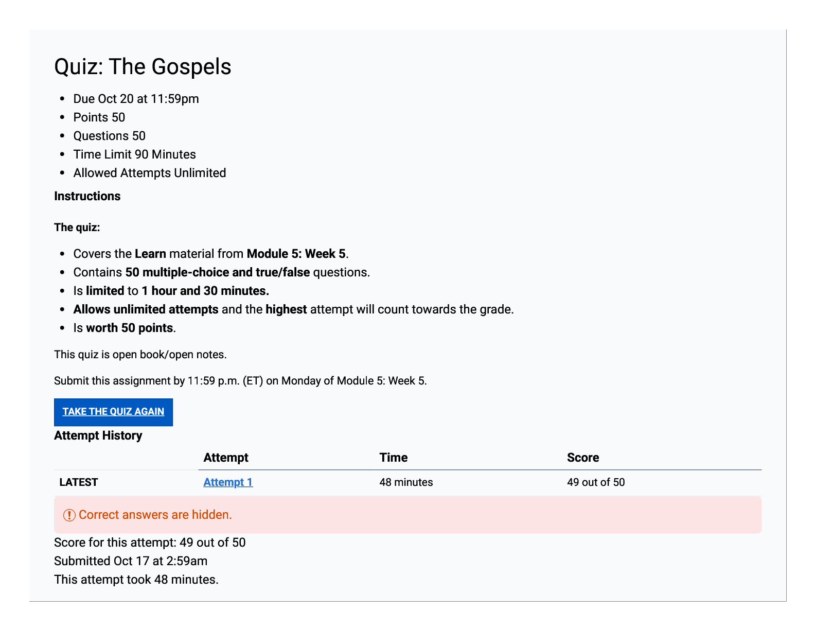 Religious Studies > EXAMs > BIBL 104 Quiz: The Gospels | Score 49/50 | Liberty University (All)
