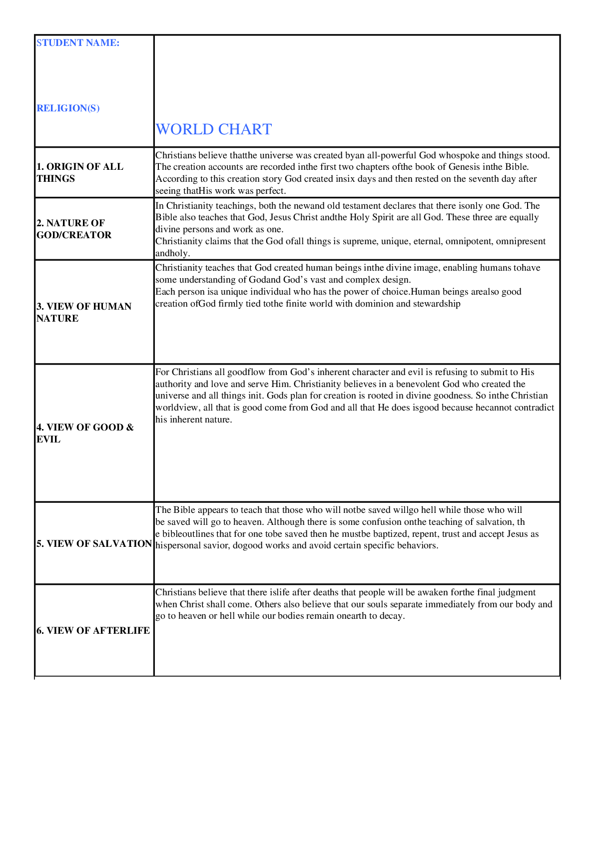 Religious Studies > QUESTIONS & ANSWERS > [Solved] Week 7 World View Chart Christianity (All)