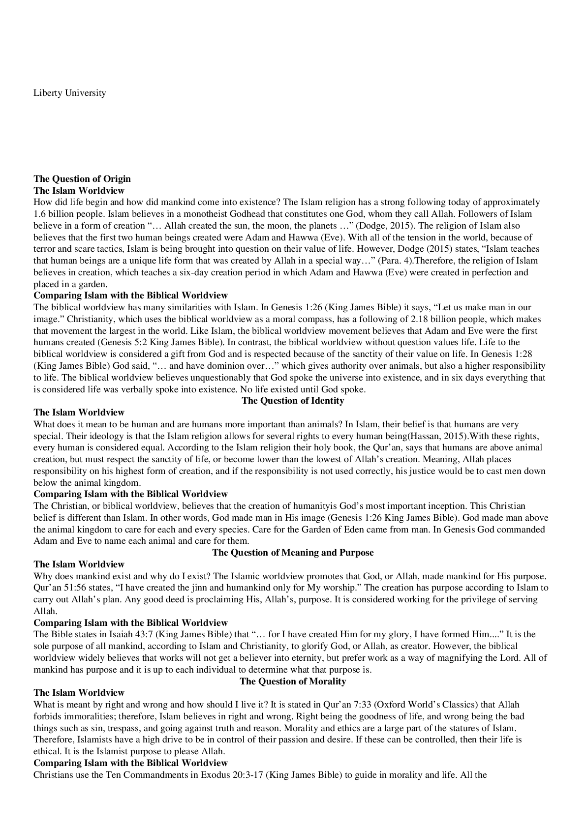 Religious Studies > QUESTIONS & ANSWERS > Liberty University RLGN 360 quiz 1 (All)