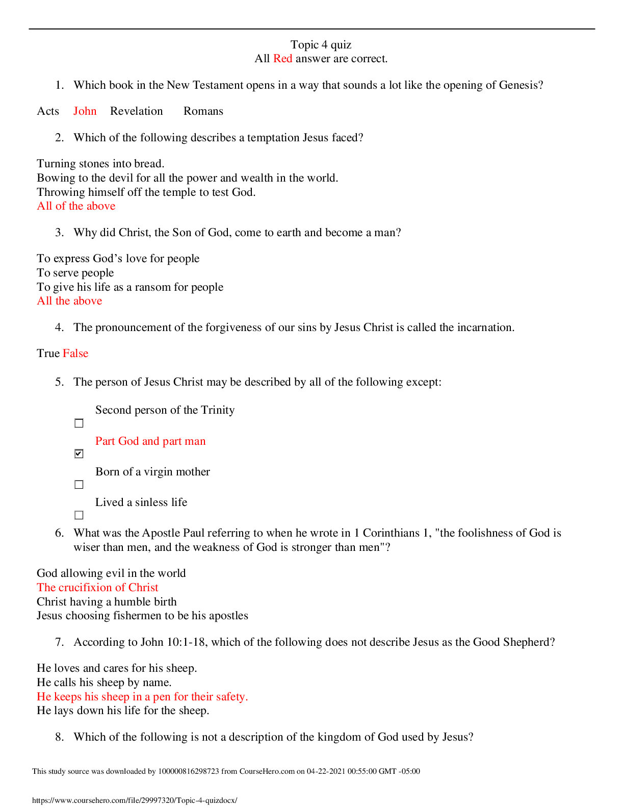 Religious Studies > EXAMs > CWV 301 Topic 4 Quiz/Answers (Latest Solution) (All)