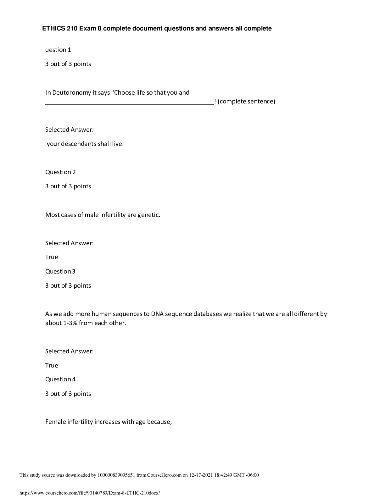 Religious Studies > EXAM > ETHICS 210 Exam 8 complete document questions and answers all complete (All)
