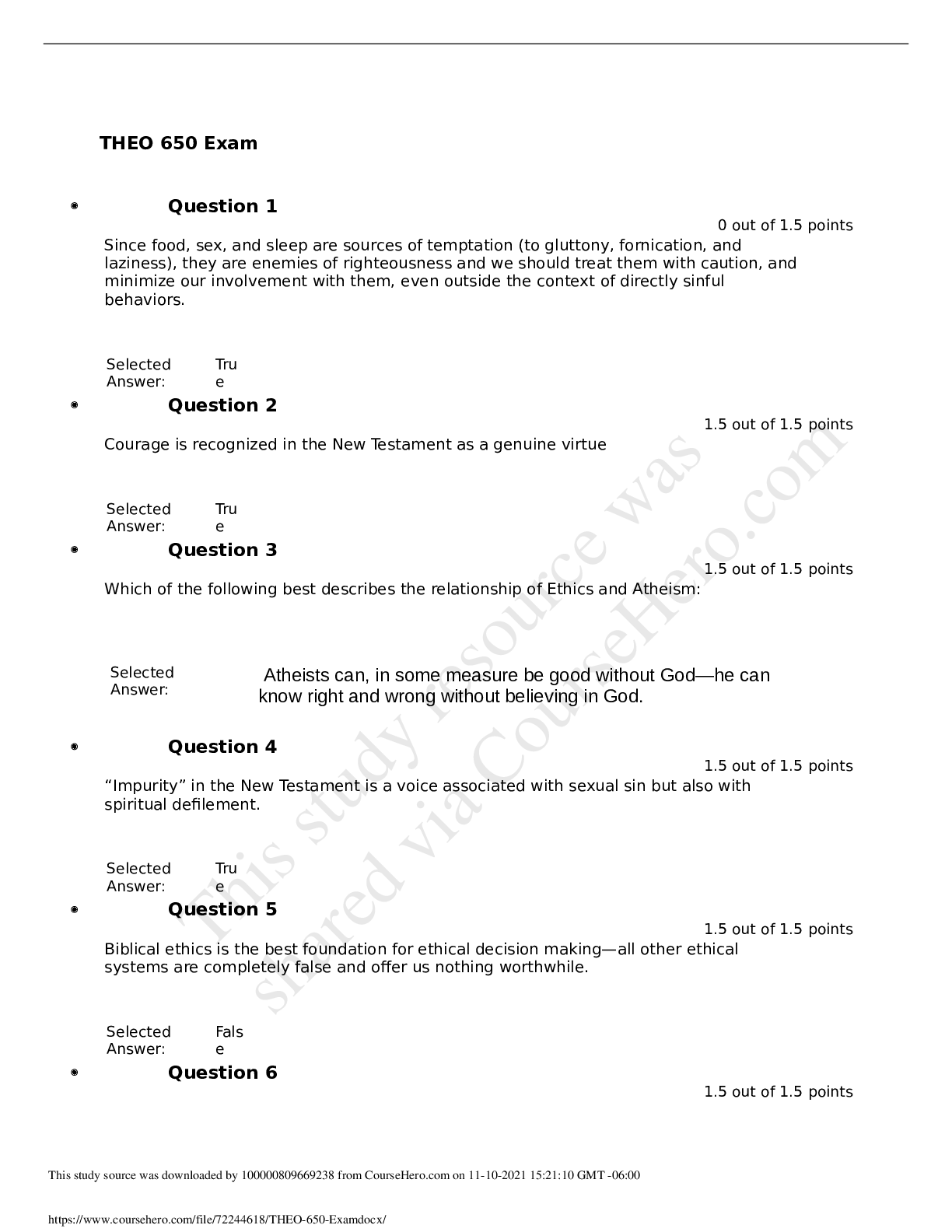 Religious Studies > EXAM > ETHC 210 exam 8 liberty university practice exam updated solutions with questions and answers (All)
