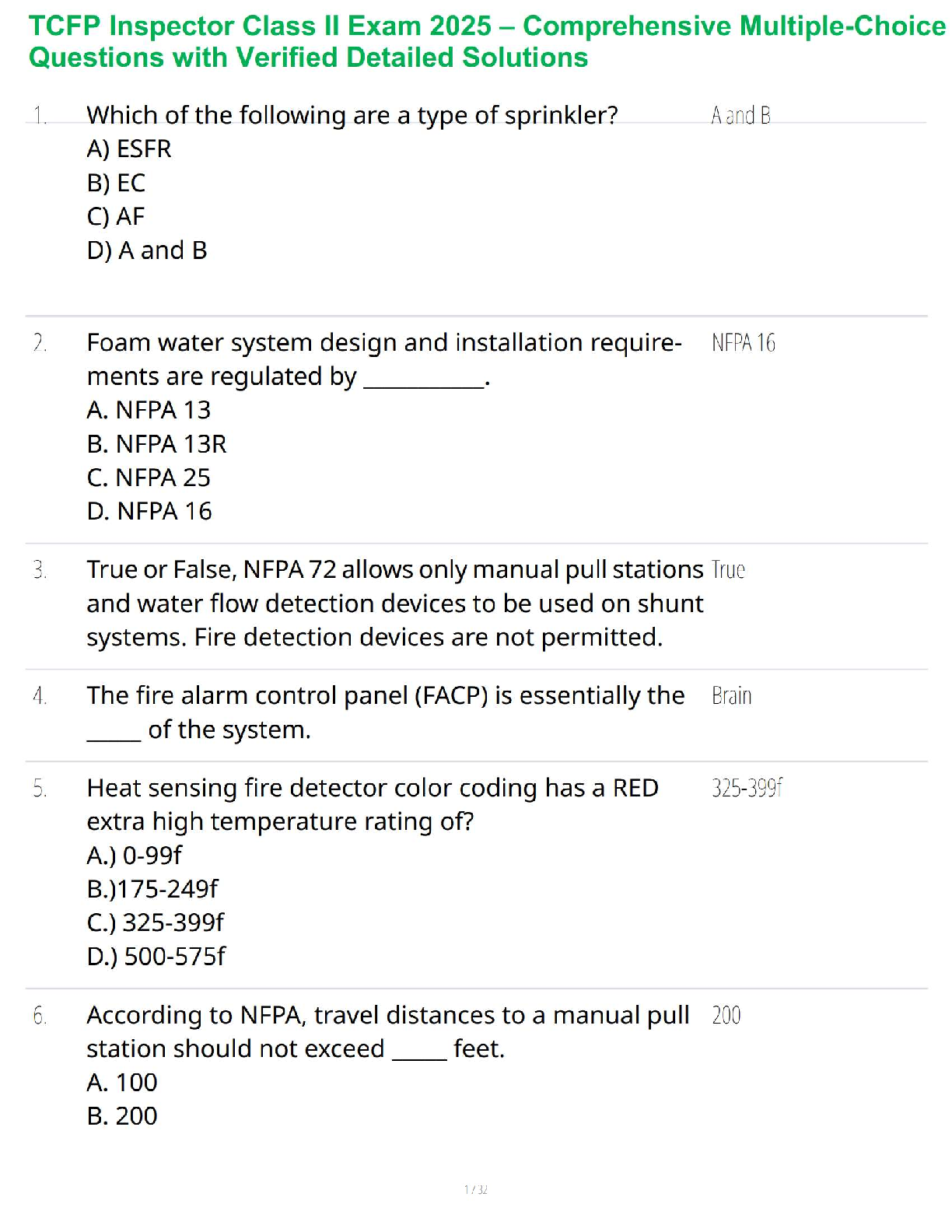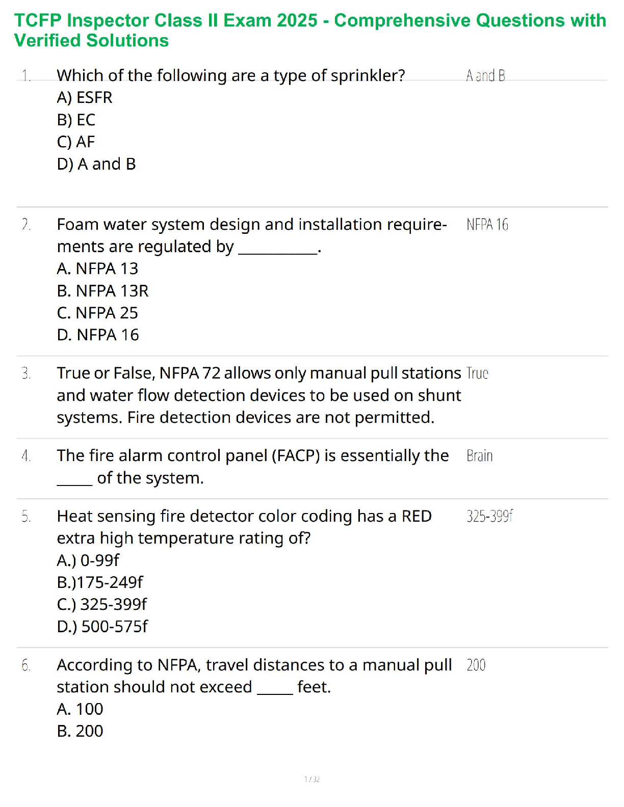 FIRE INSPECTOR > QUESTIONS & ANSWERS > TCFP Inspector Class II Exam 2025 - Comprehensive Questions with Verified Solutions (All)