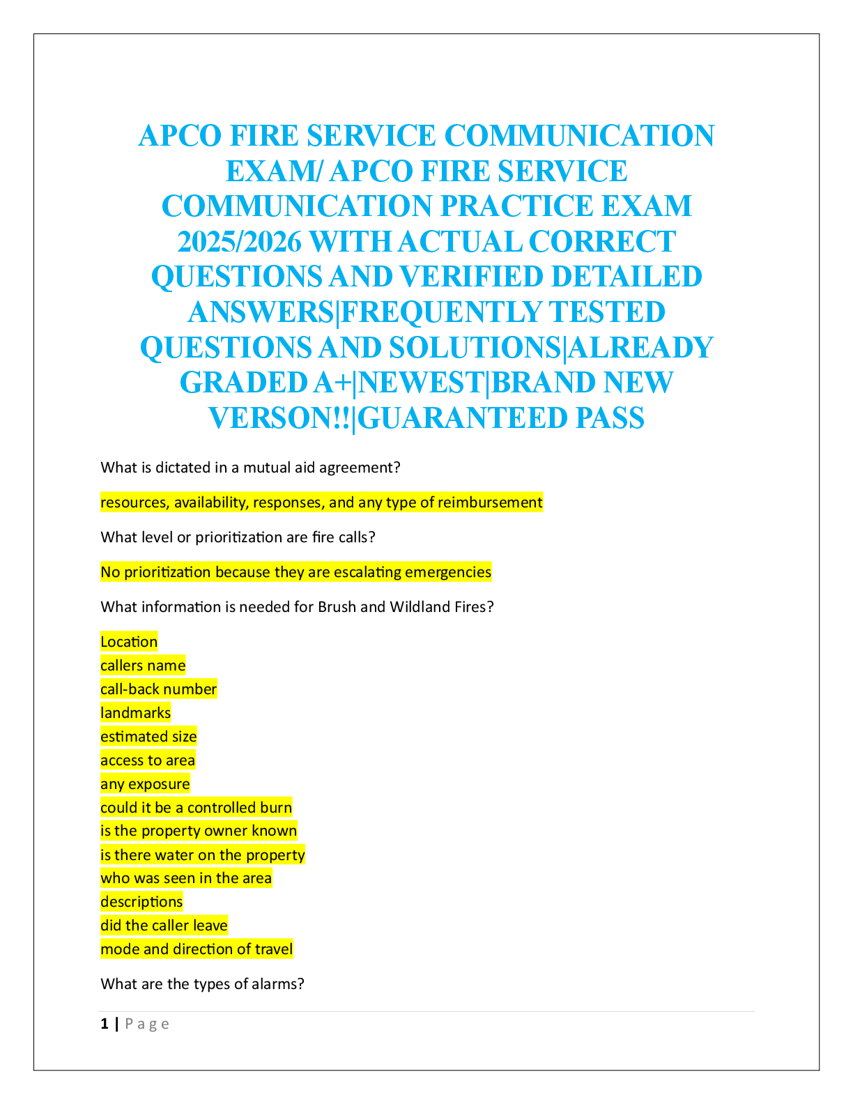 FIRE INSPECTOR > EXAMs > APCO FIRE SERVICE COMMUNICATION EXAM (All)