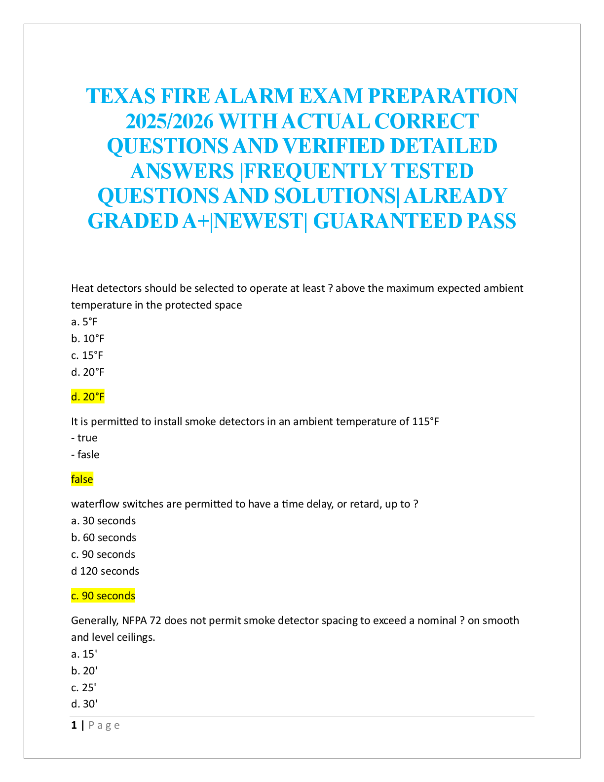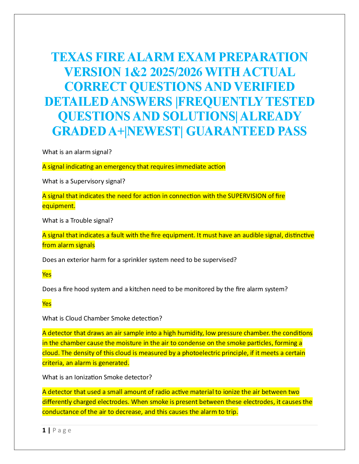 FIRE INSPECTOR > EXAMs > TEXAS FIRE ALARM EXAM PREPARATION VERSION 1&2 2025/2026 (All)