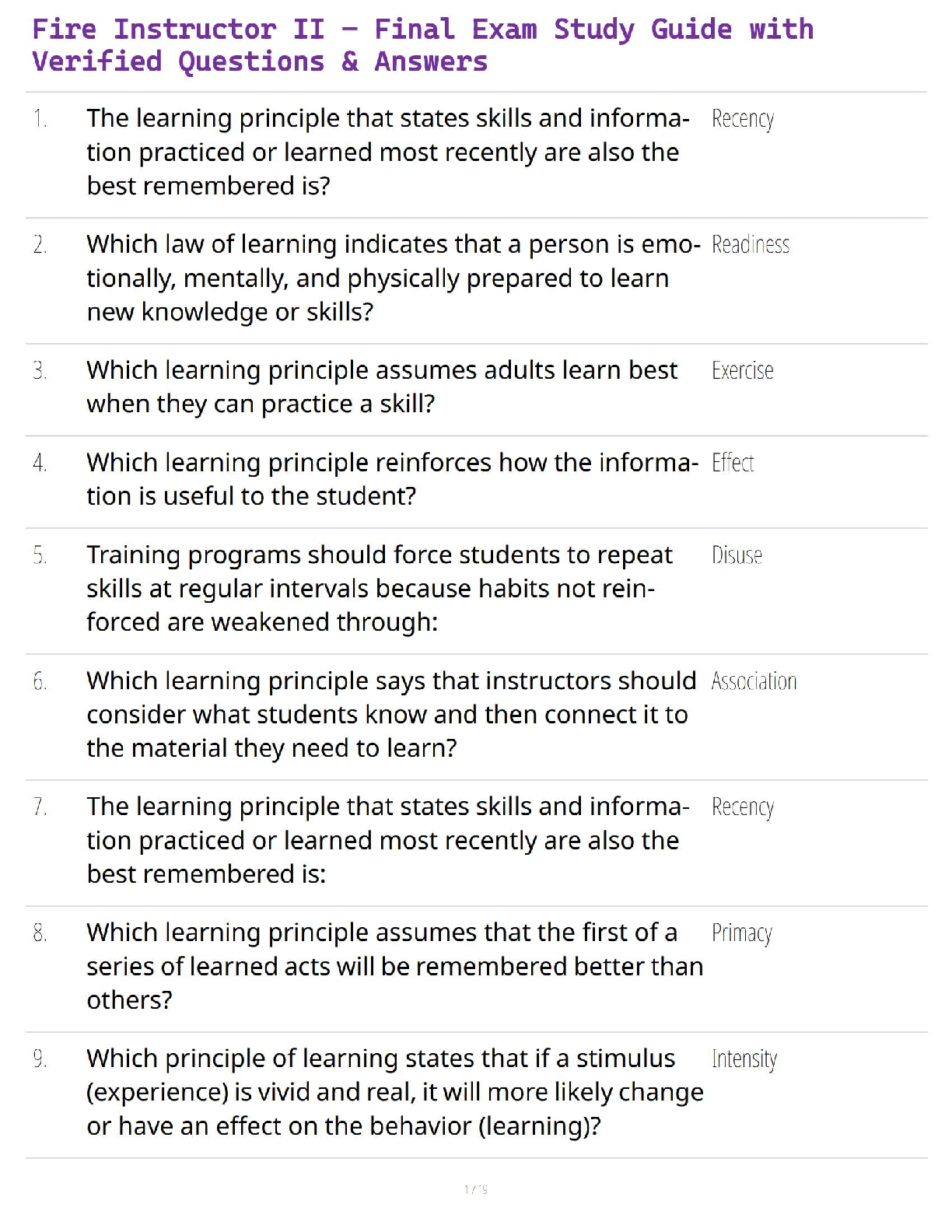 Fire Inspector 2 > QUESTIONS and ANSWERS > Fire Instructor II – Final Exam Study Guide with Verified Questions & Answers (All)