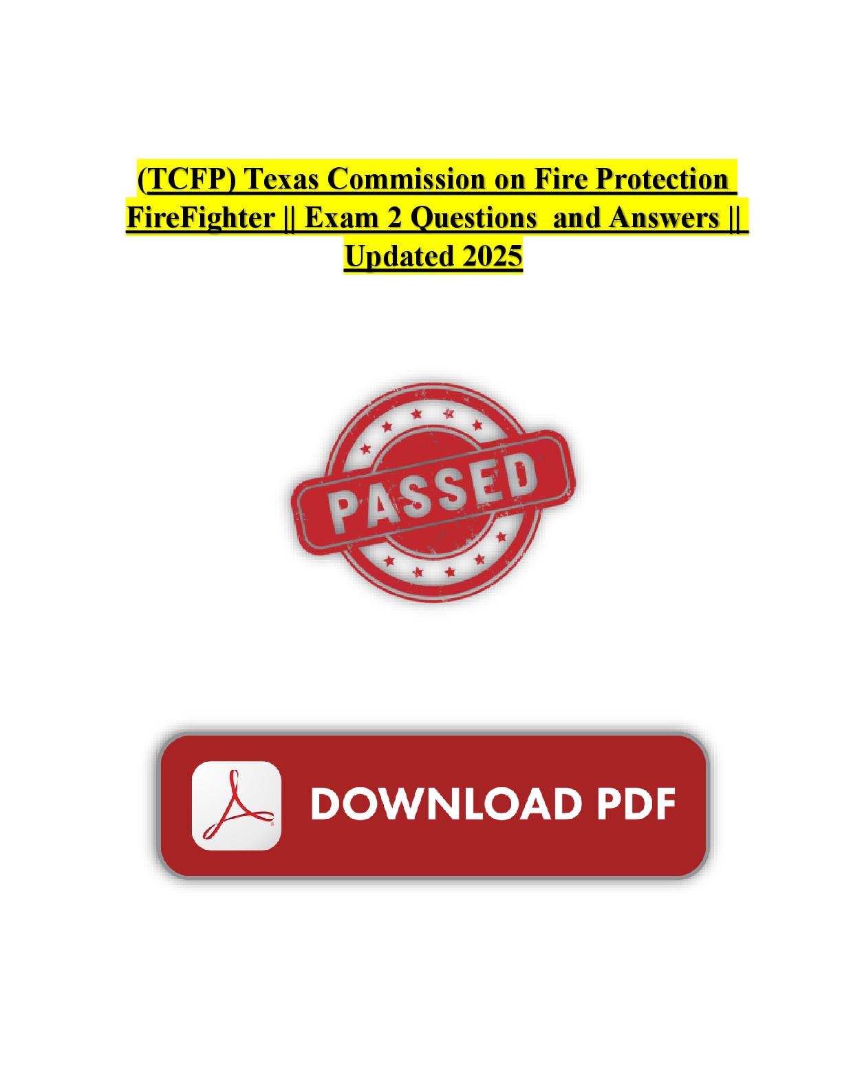 TCFP FIRE INSPECTOR > EXAM > (TCFP) Texas Commission on Fire Protection FireFighter || Exam 2 Questions and Answers || Updated 2025 (All)