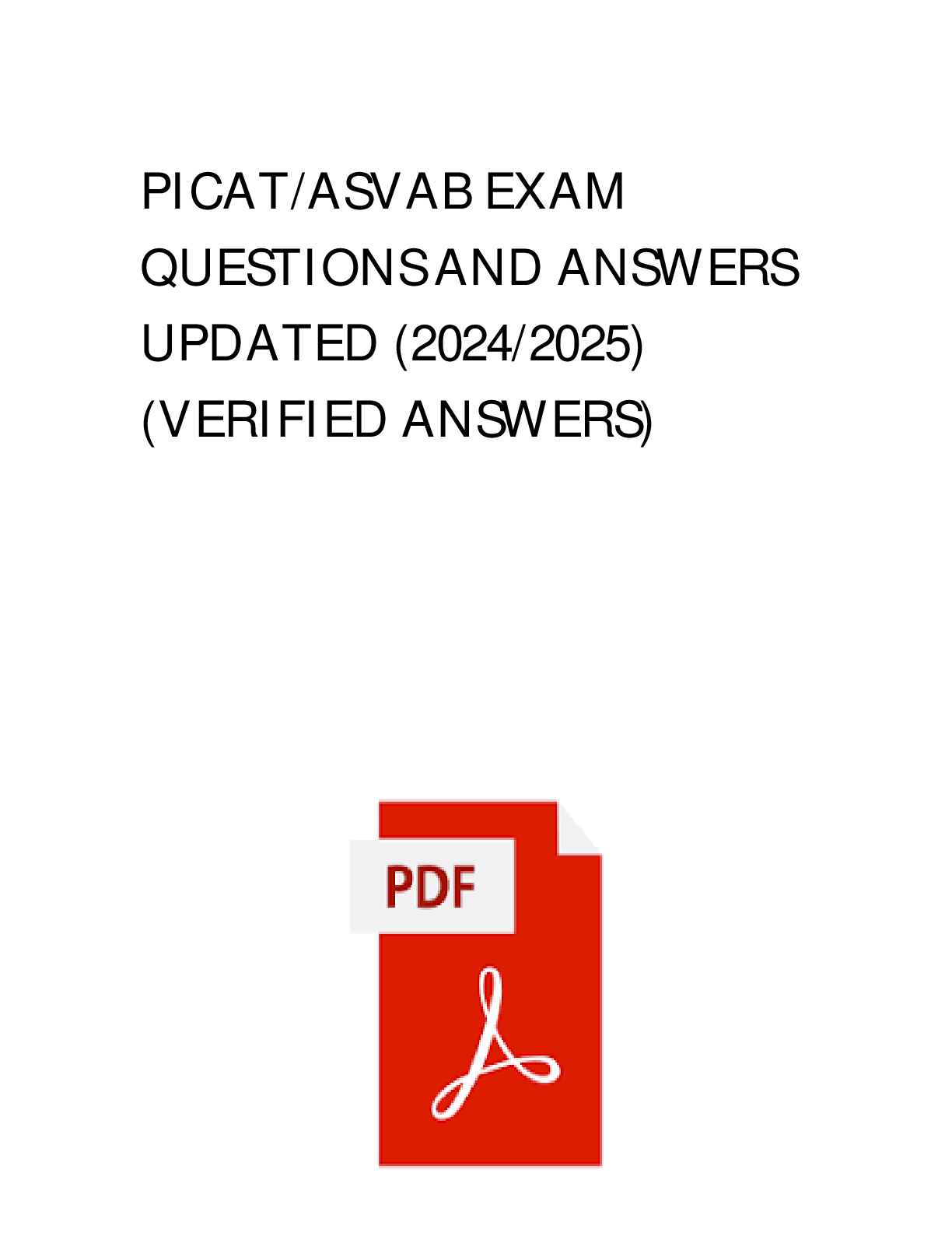 PICAT/ASVAB > EXAM > PICAT/ASVAB EXAM QUESTIONS AND ANSWERS UPDATED [2025] (VERIFIED ANSWERS) (All)