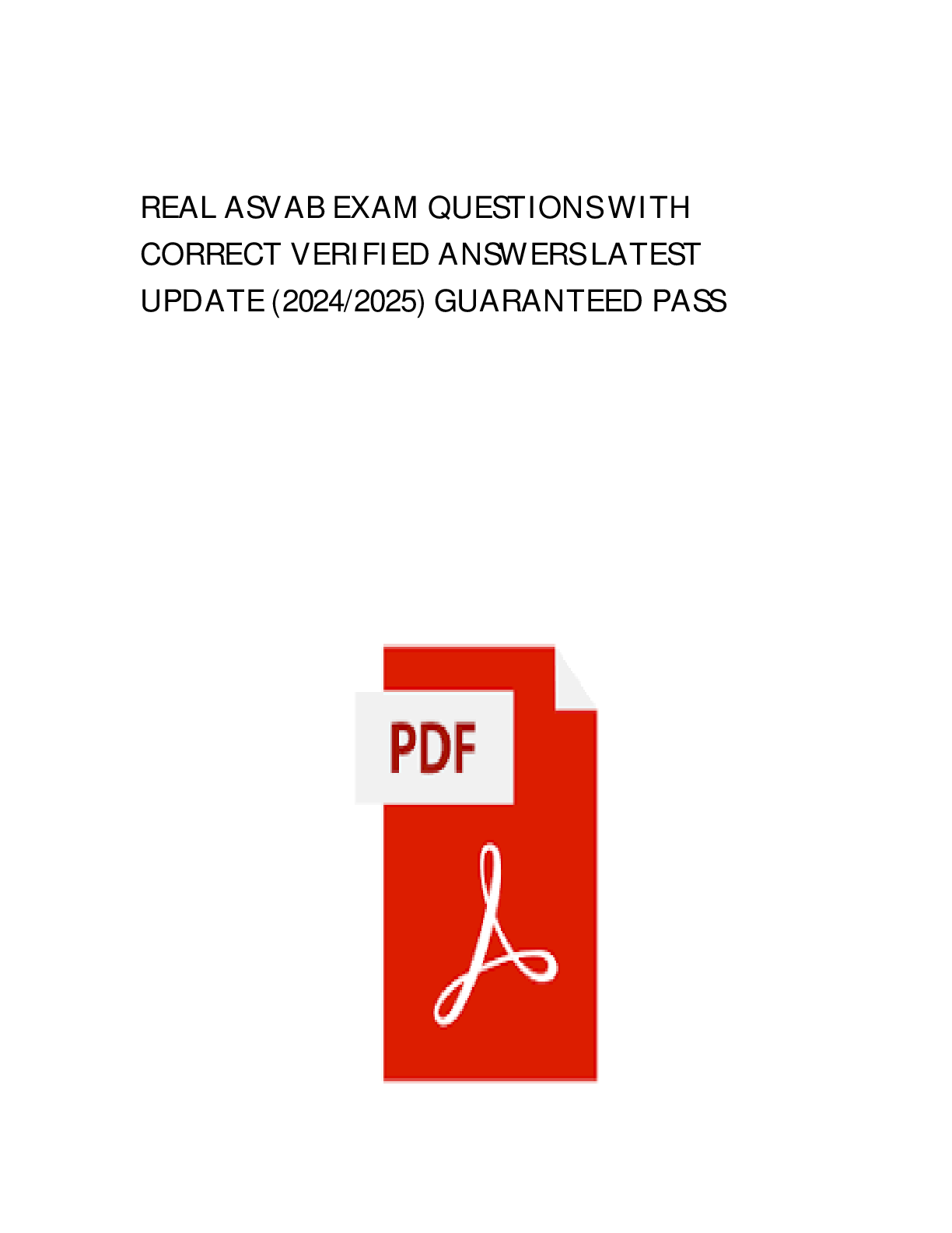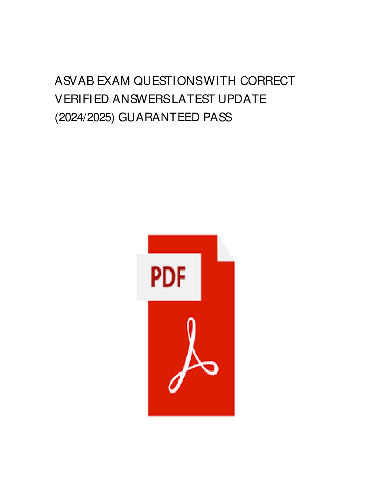 PICAT/ASVAB > EXAM > REAL ASVAB EXAM QUESTIONS WITH CORRECT VERIFIED ANSWERS LATEST UPDATE [2025] GUARANTEED PASS (All)