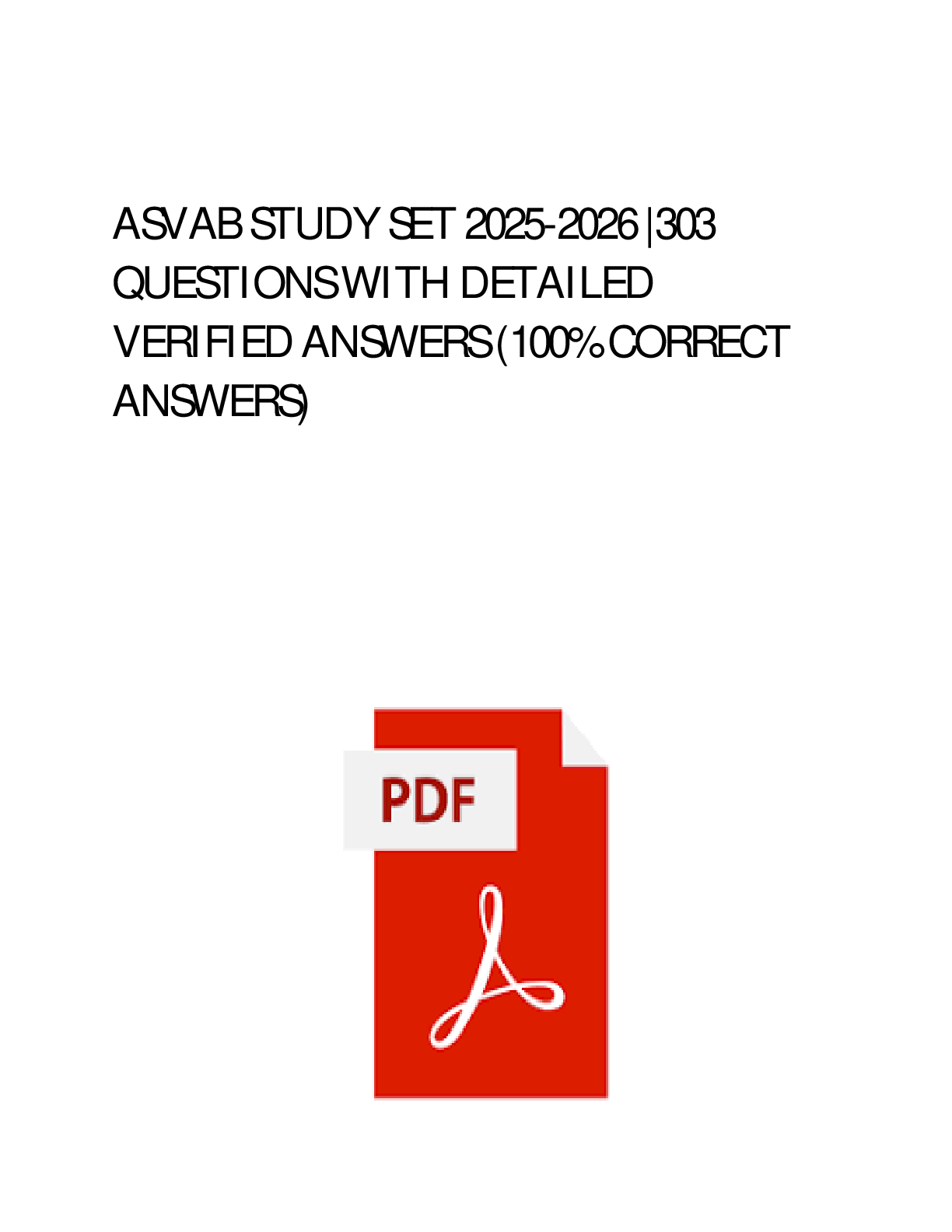 PICAT/ASVAB > EXAM > ASVAB STUDY SET || 303 QUESTIONS WITH DETAILED VERIFIED ANSWERS (100% CORRECT ANSWERS) (All)