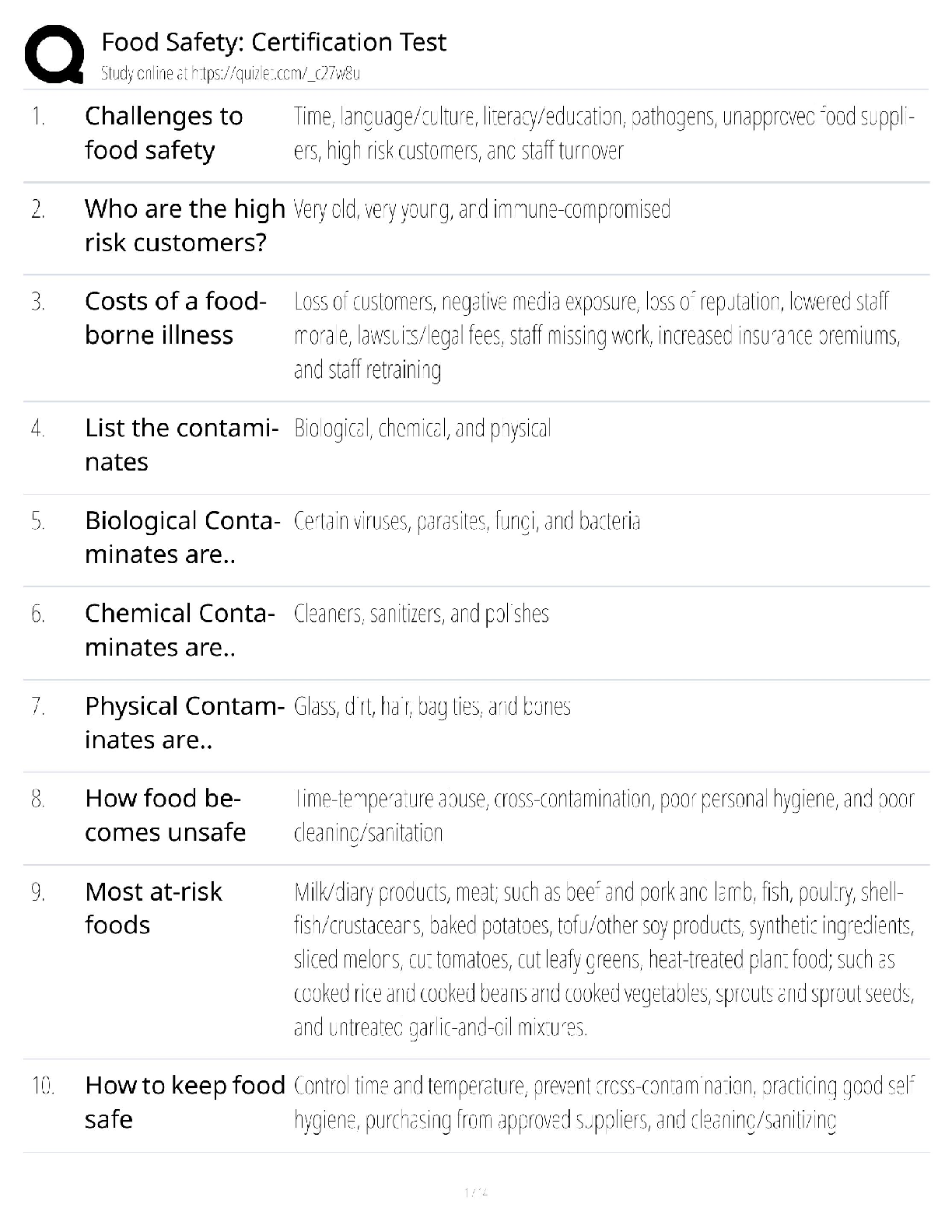 Here are the best study resources to pass ServSafe Food Safety Training Program (SERVSAFE). Find ServSafe Food Safety Training Program (SERVSAFE) study guides, notes, assignments, and much more.